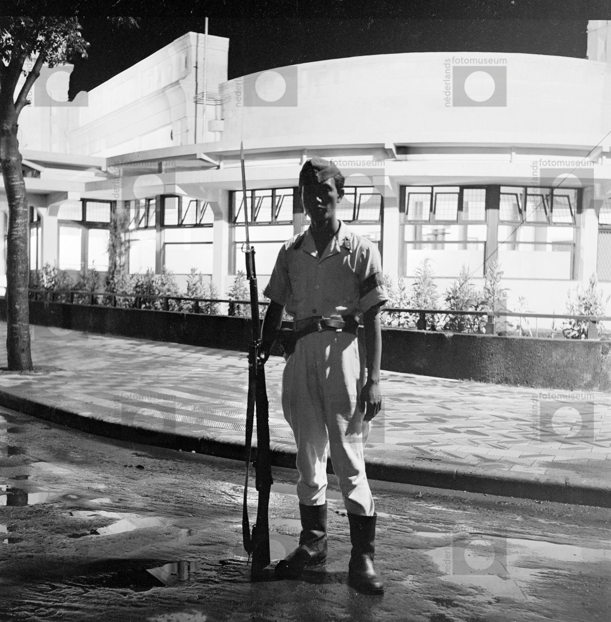 Soldaat staat op wacht voor sociëteit Concordia te B...