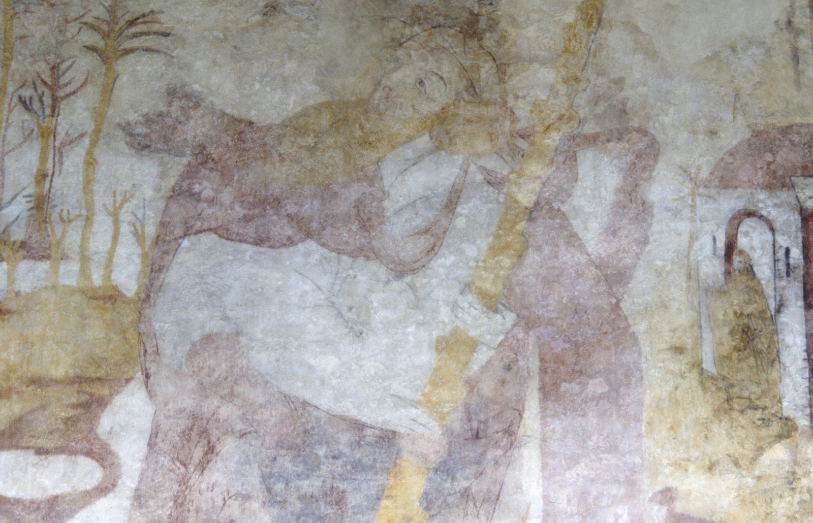 Interieur, noordmuur, muurschildering
