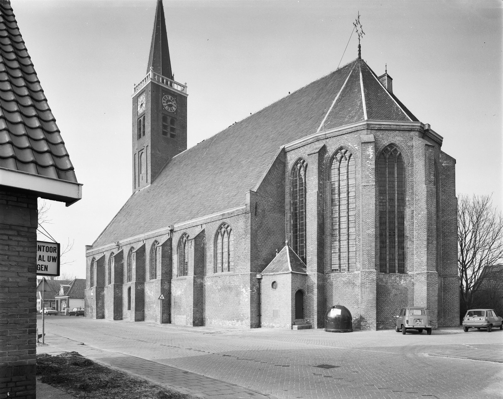Hervormde kerk en consistorie vanuit het noordoosten