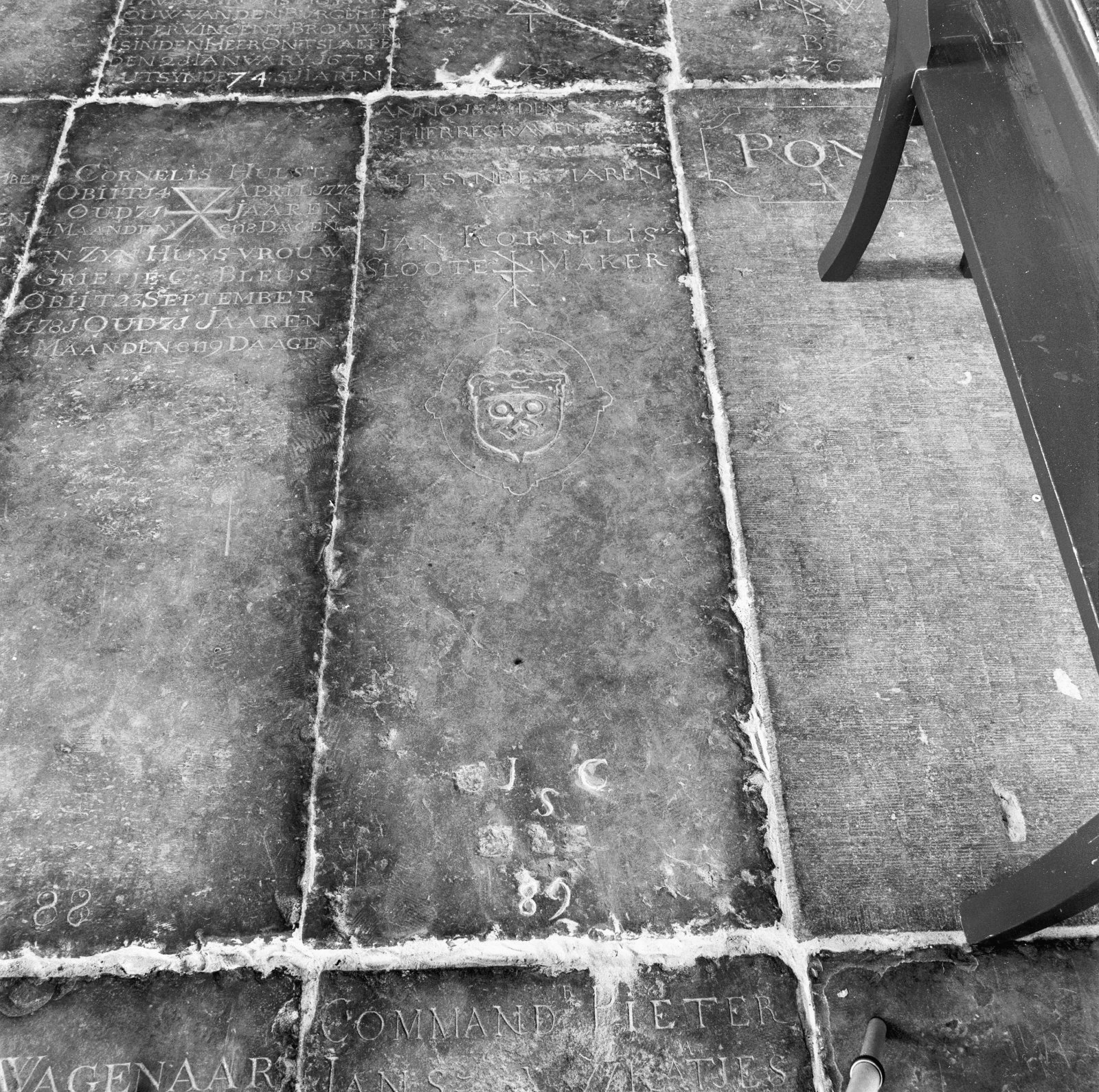 Interieur, grafzerken in de vloer van de Hervormde kerk