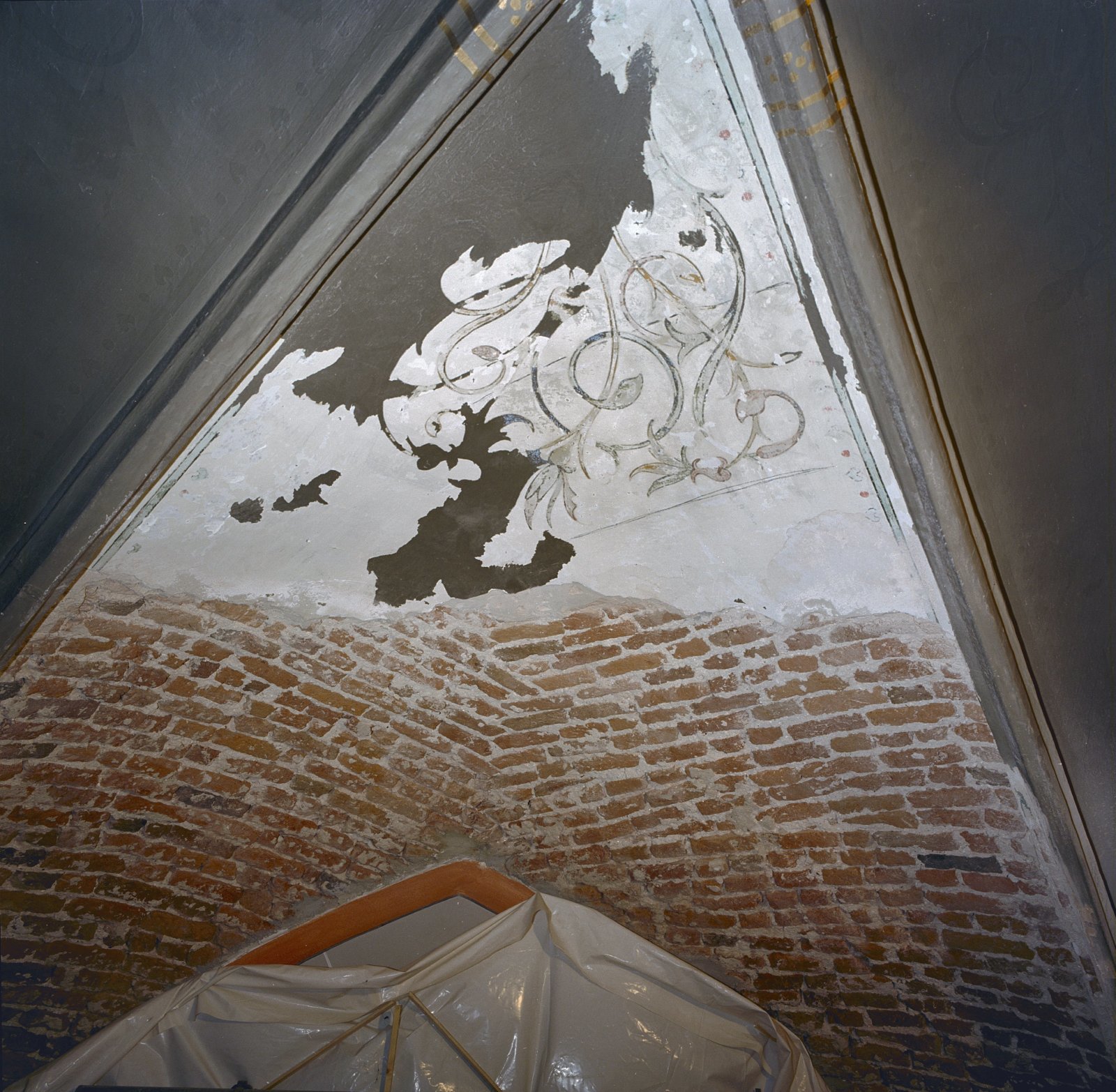 Interieur, gewelf met schilderingen, detail