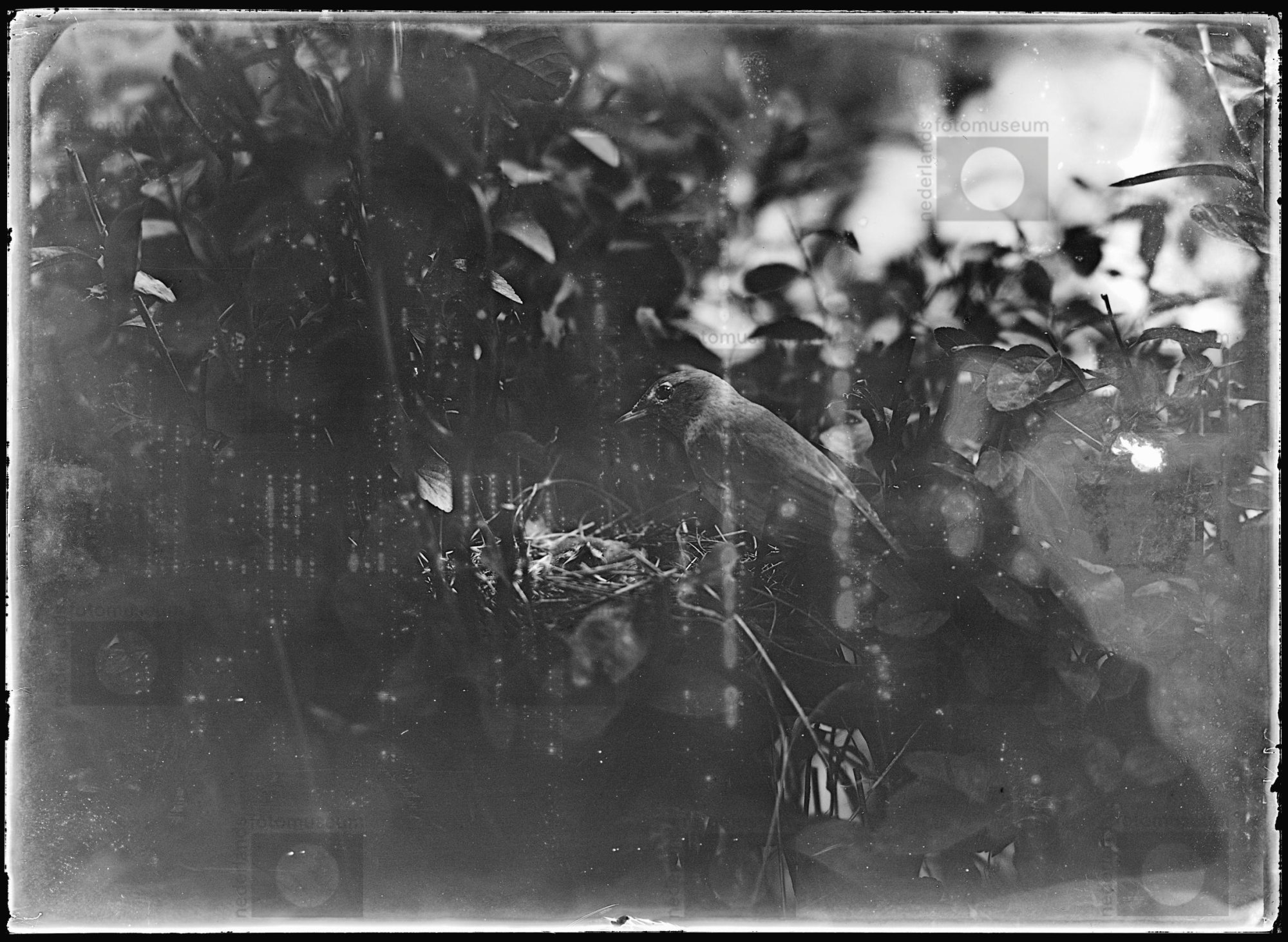 Vrouwtje Grauwe klauwier bij nest, Beekbergen (1915)