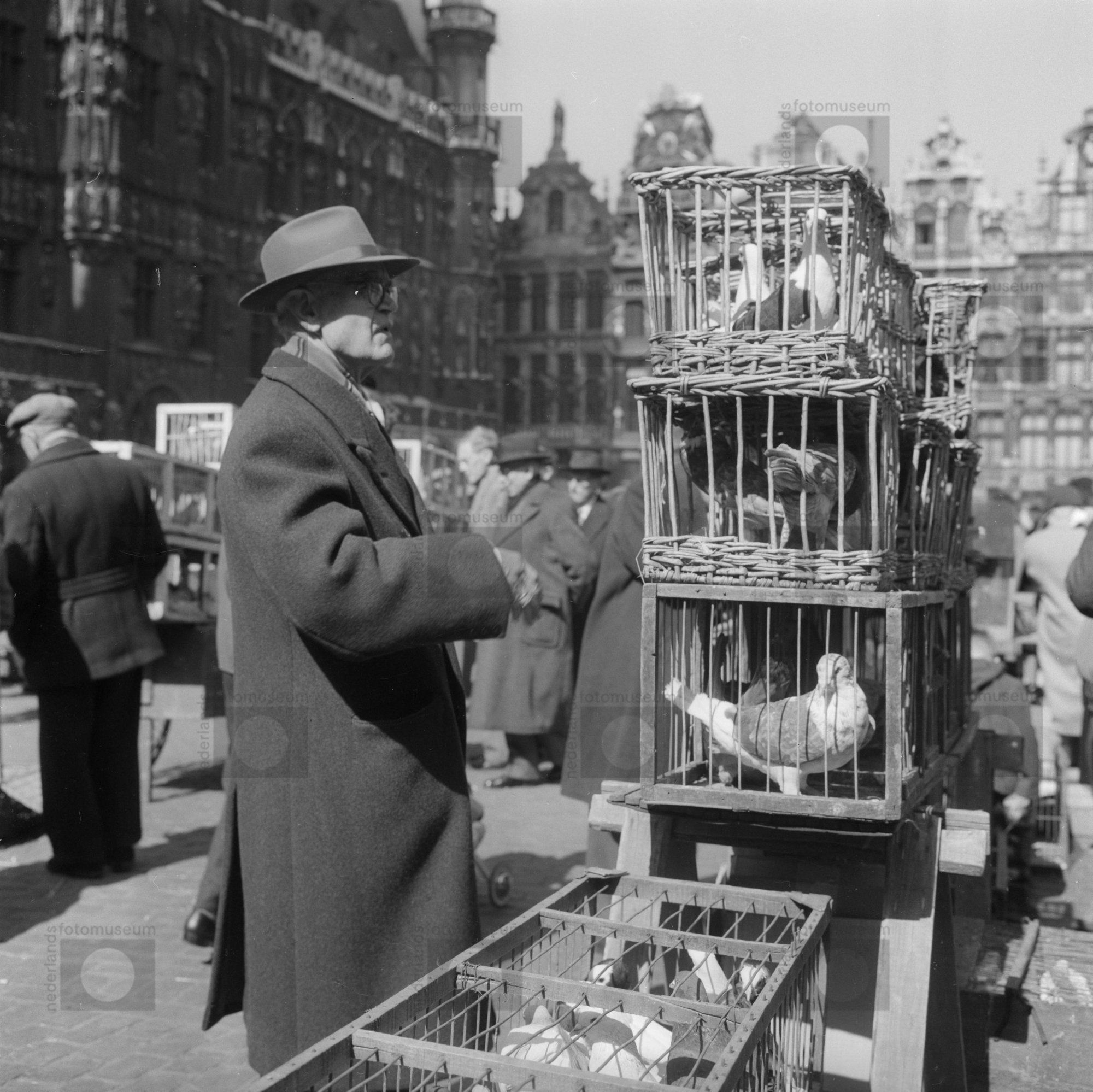 Vogeltjesmarkt op de Grote Markt, Brussel (1956)