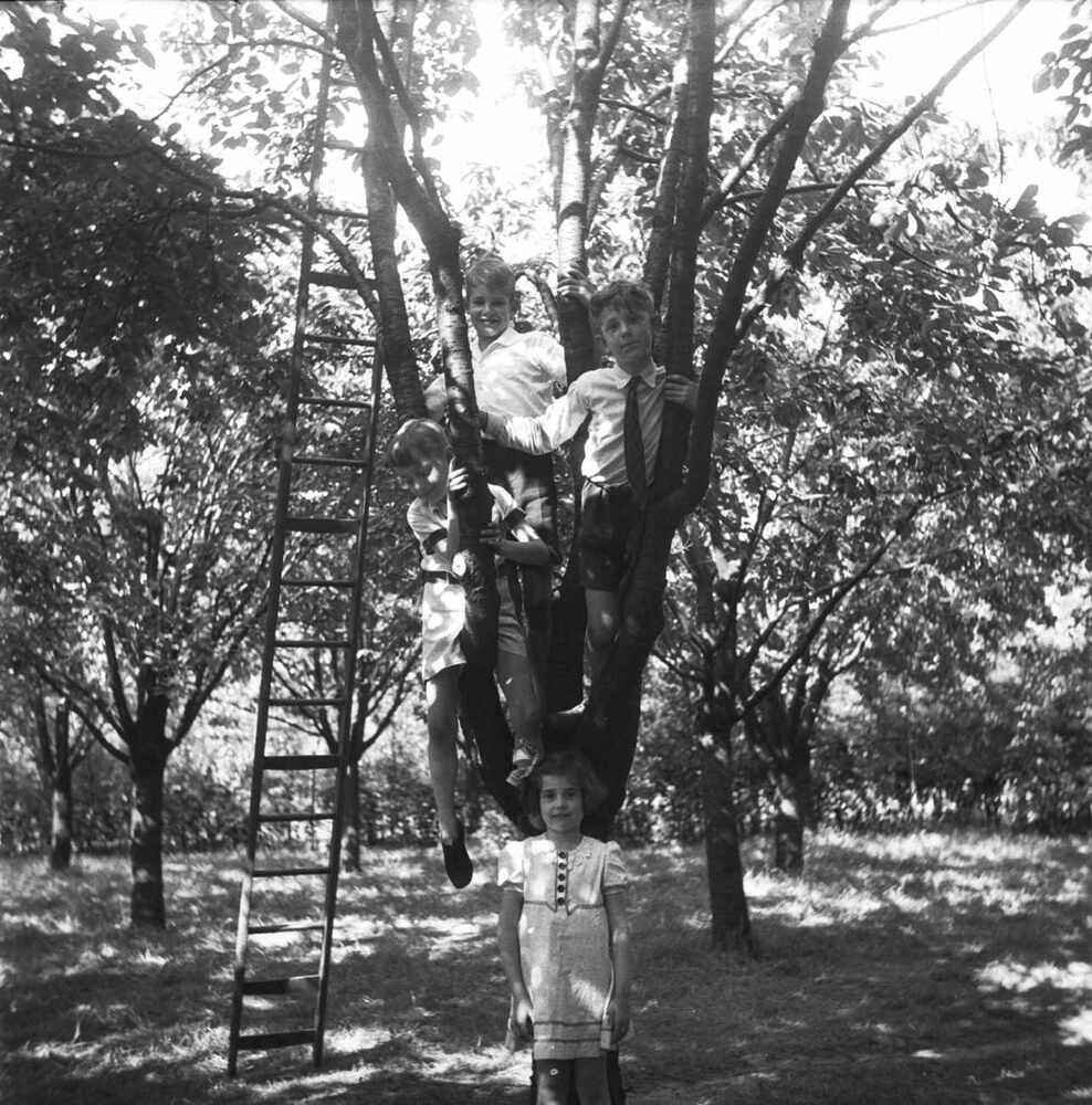 Foto, voorstellende een kersenboomgaard met kinderen...