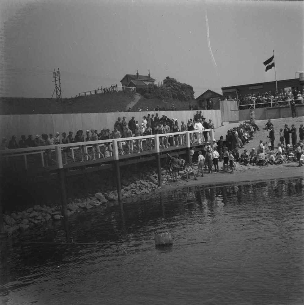 Foto, voorstellende de opening van het nieuwe zwemba...