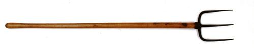 Mestspreidvork van metaal met houten steel gebruikt ...