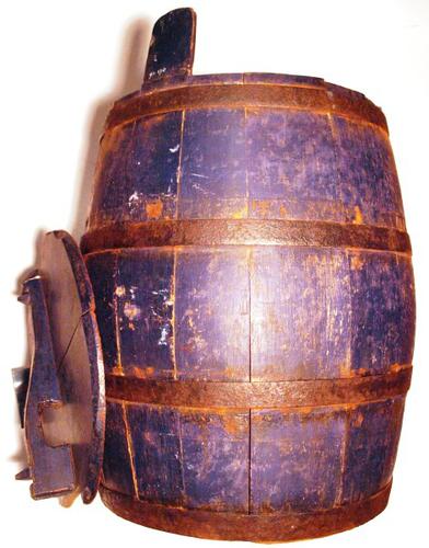 Wrongelbak van hout gebruikt onder de wrongelmolen b...