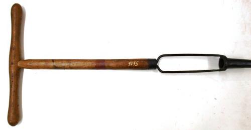 Bonenpootboor van metaal en hout gebruikt om pootgat...