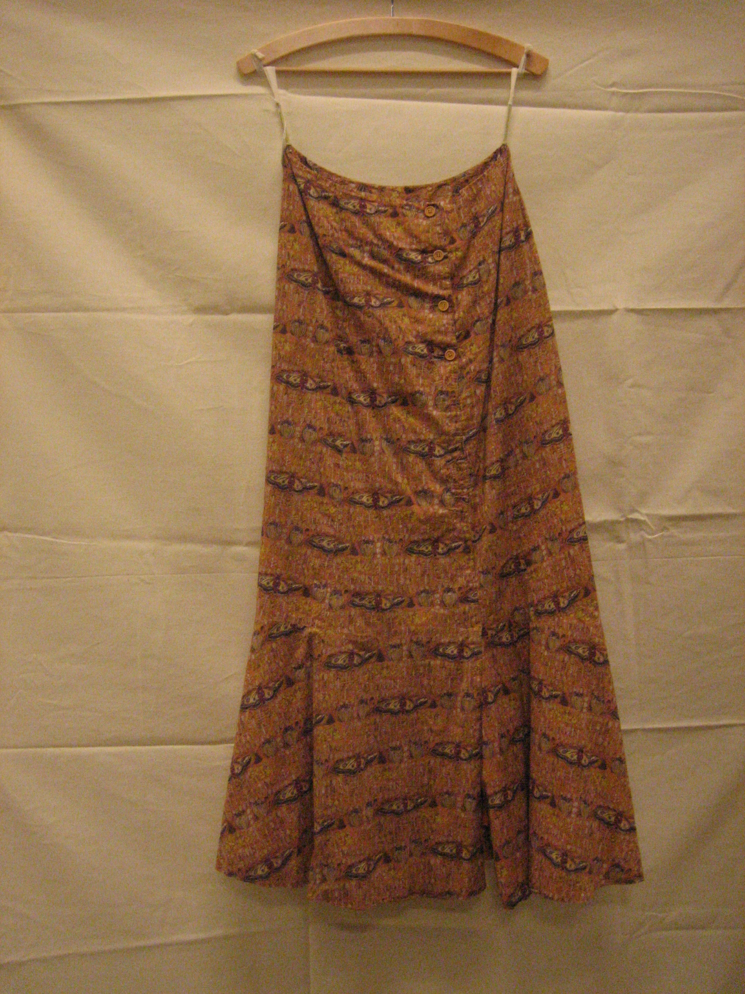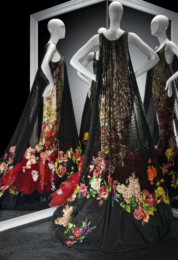 Avondjurk, jurk van wit zijden crêpe bedrukt met blo...