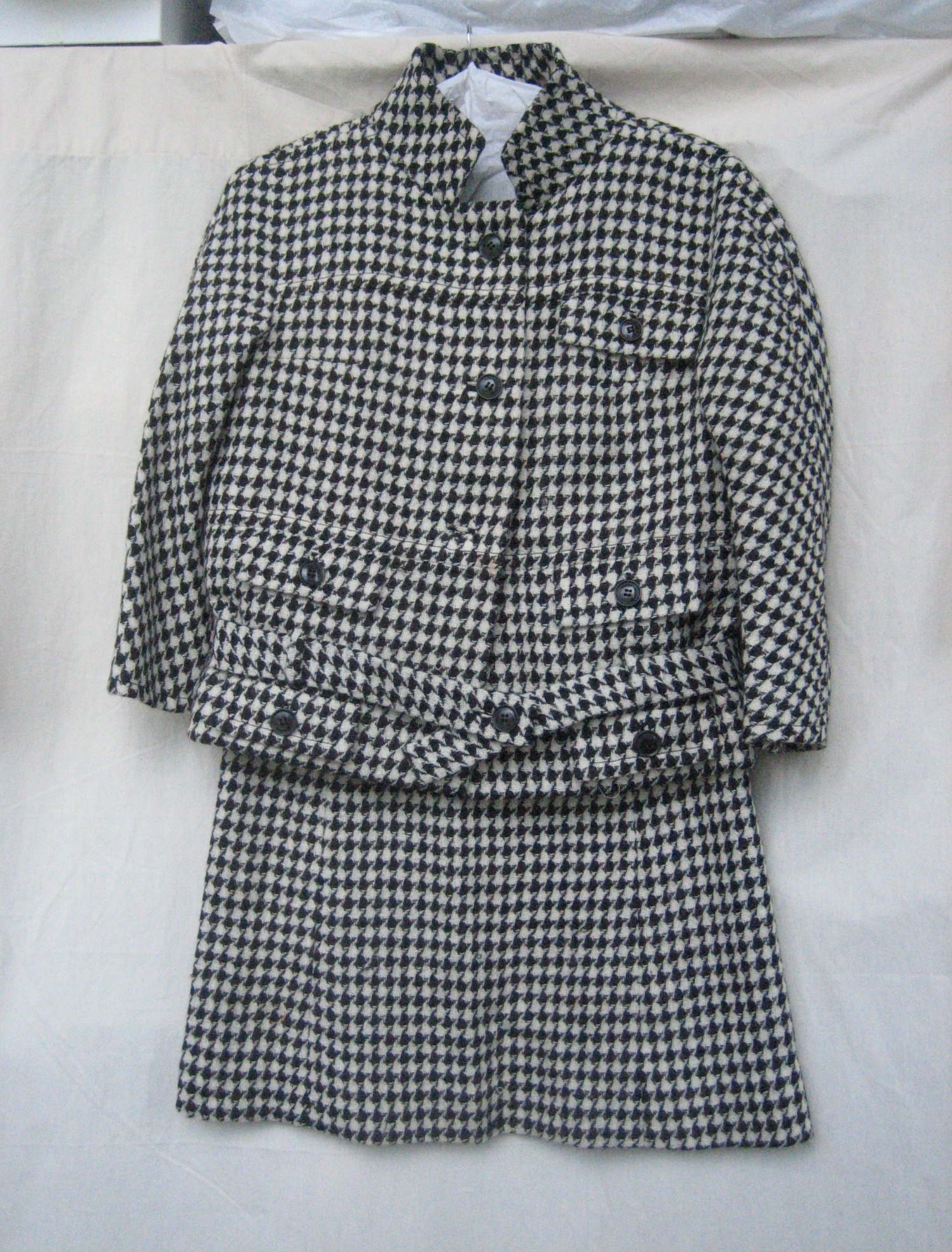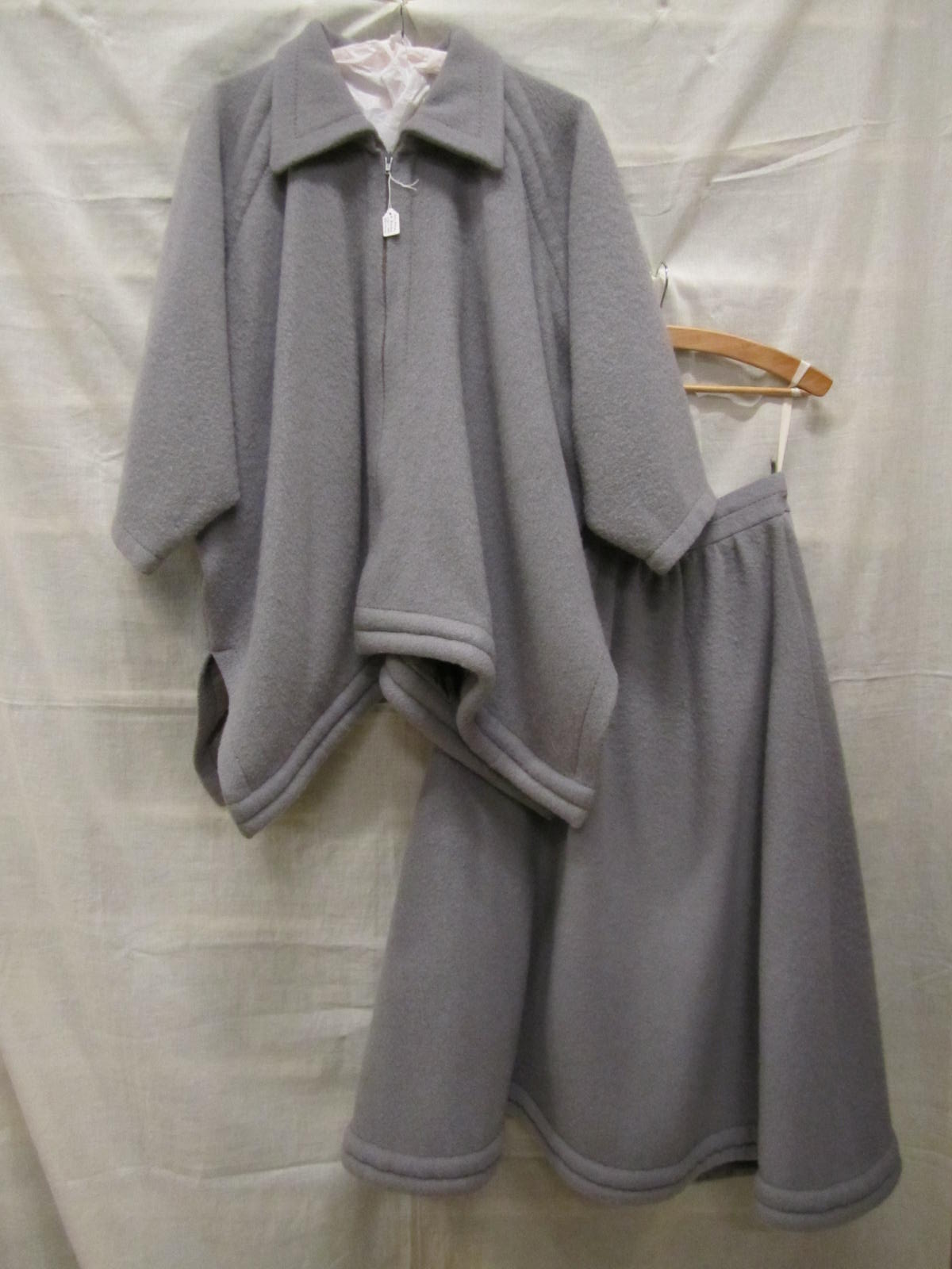 Ensemble bestaande uit jasje en rok van grijs wollen...