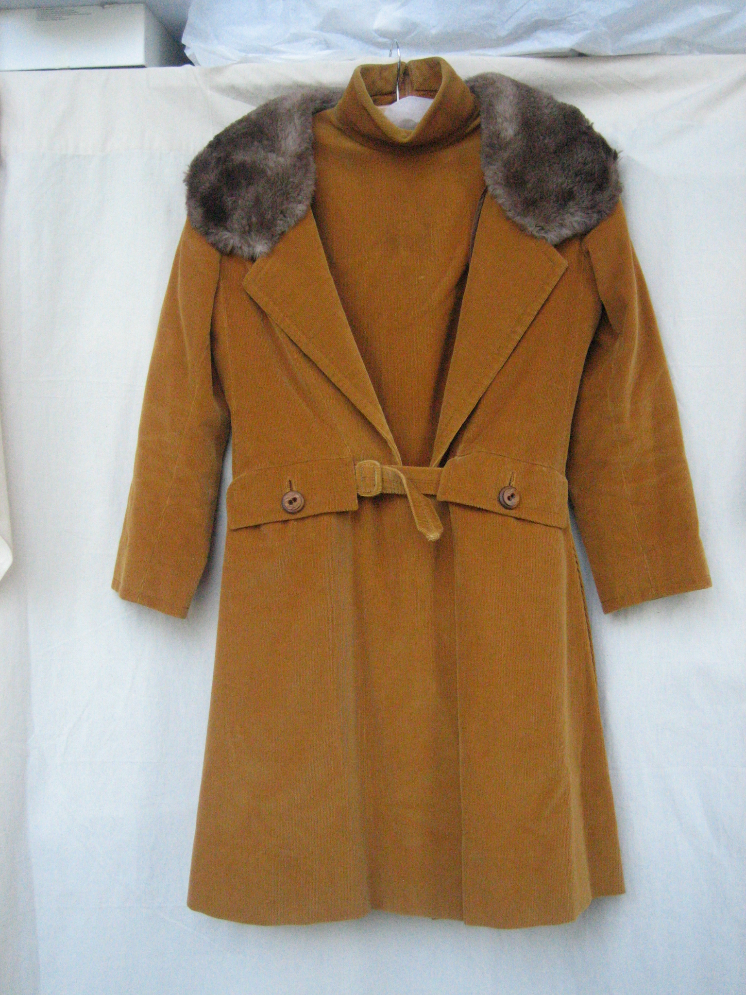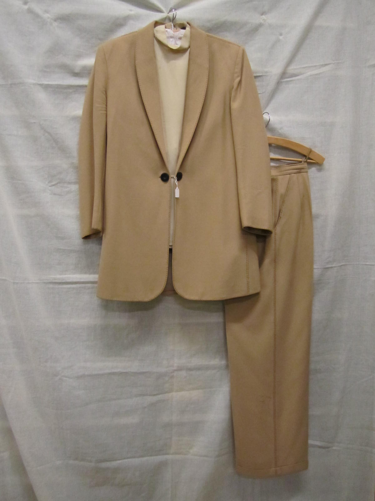 Ensemble bestaande uit broekpak van camelkleurige du...