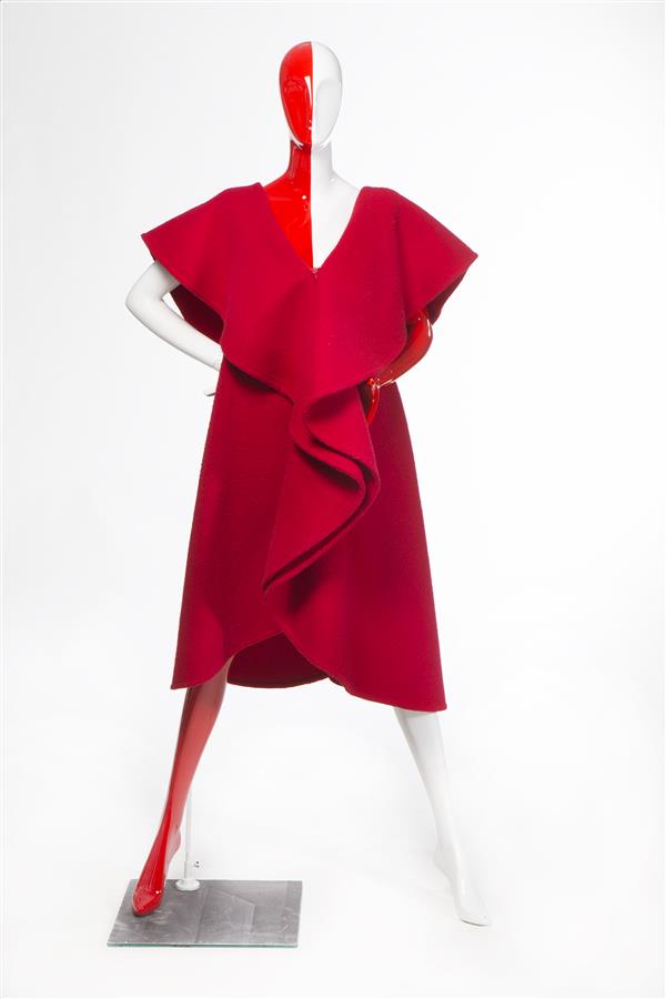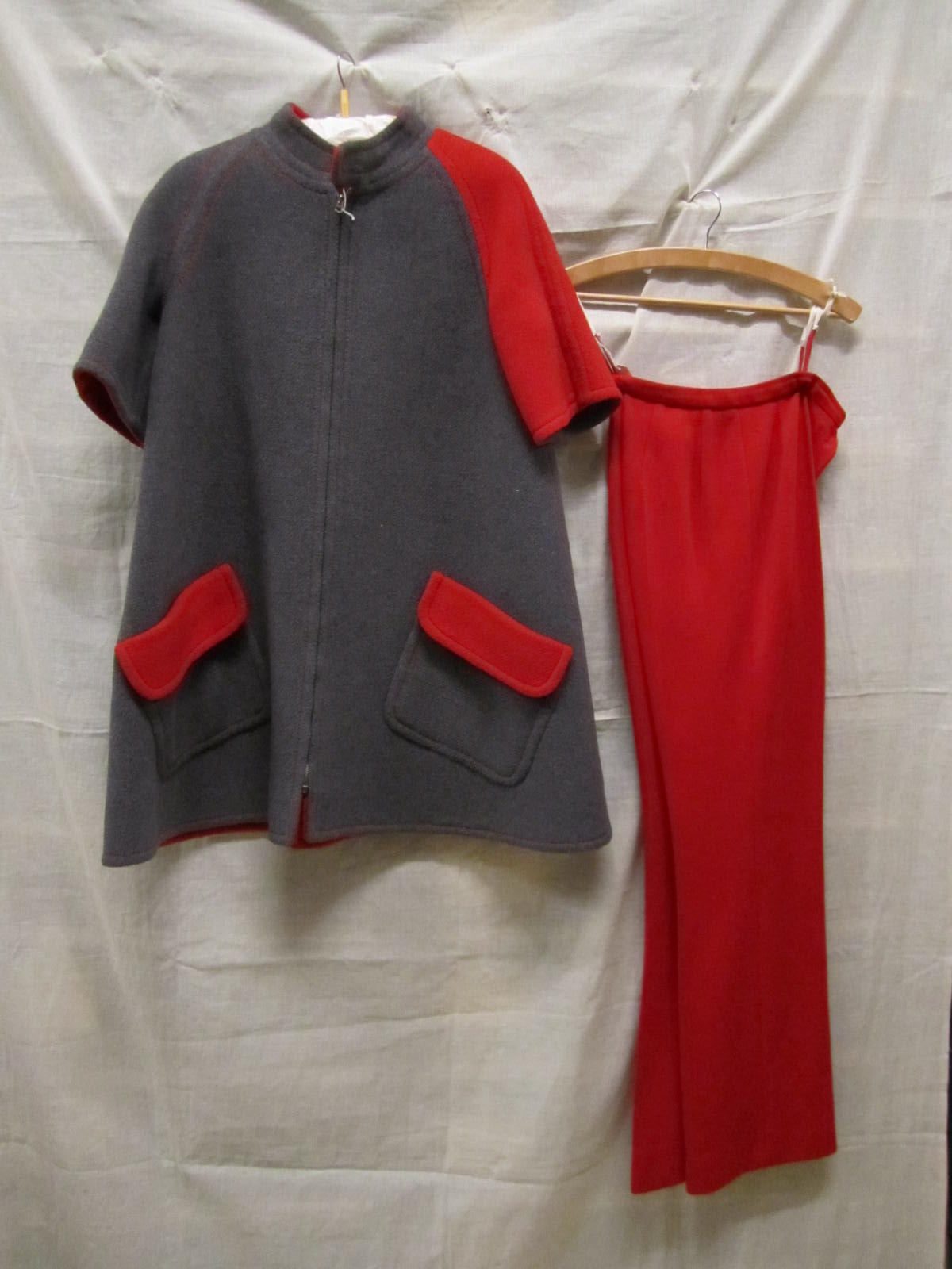 Cape van double face rode wol, 2 cirkelvormen aan el...
