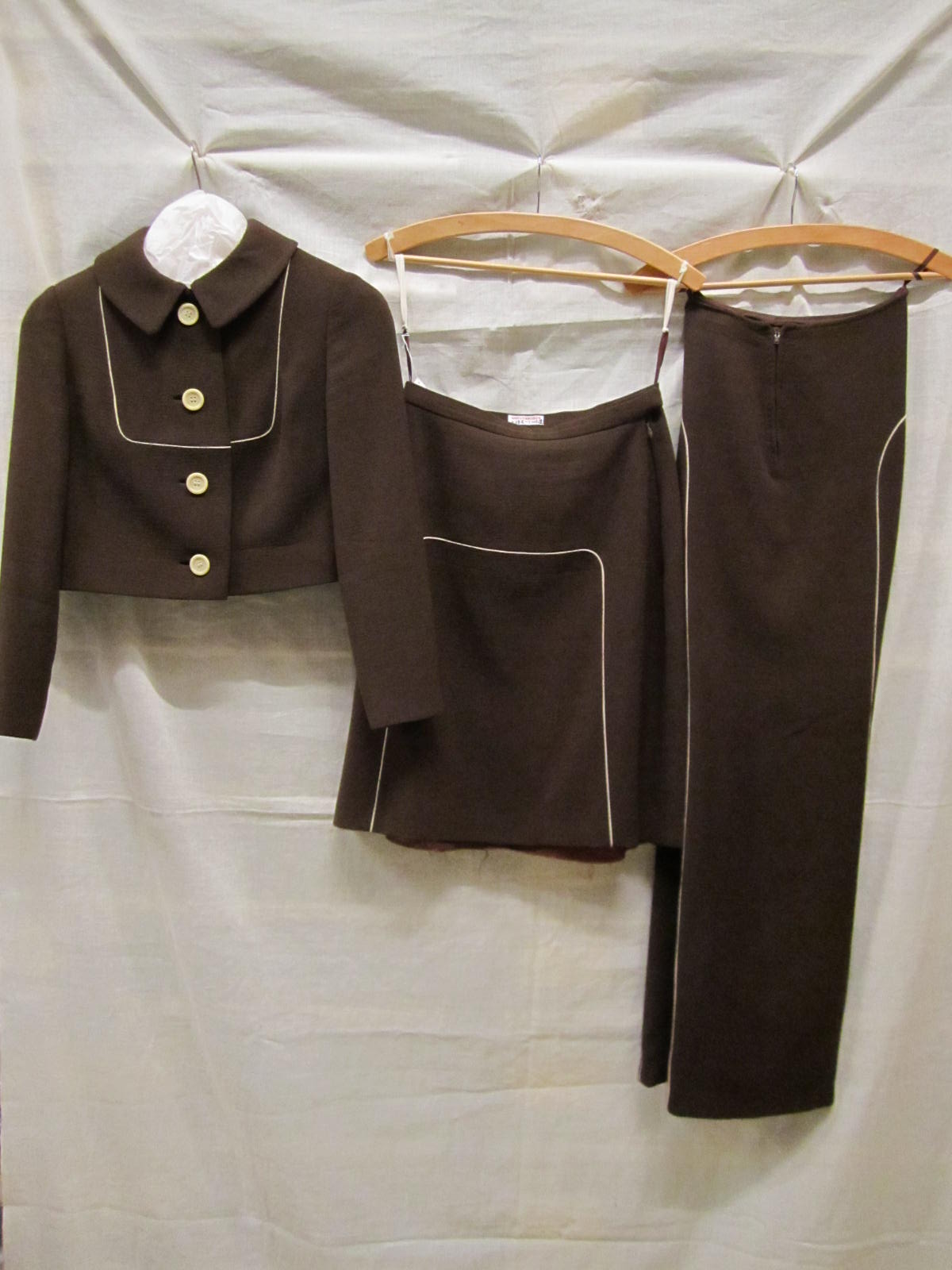 Ensemble bestaande uit rok, broek en jasje van bruin...