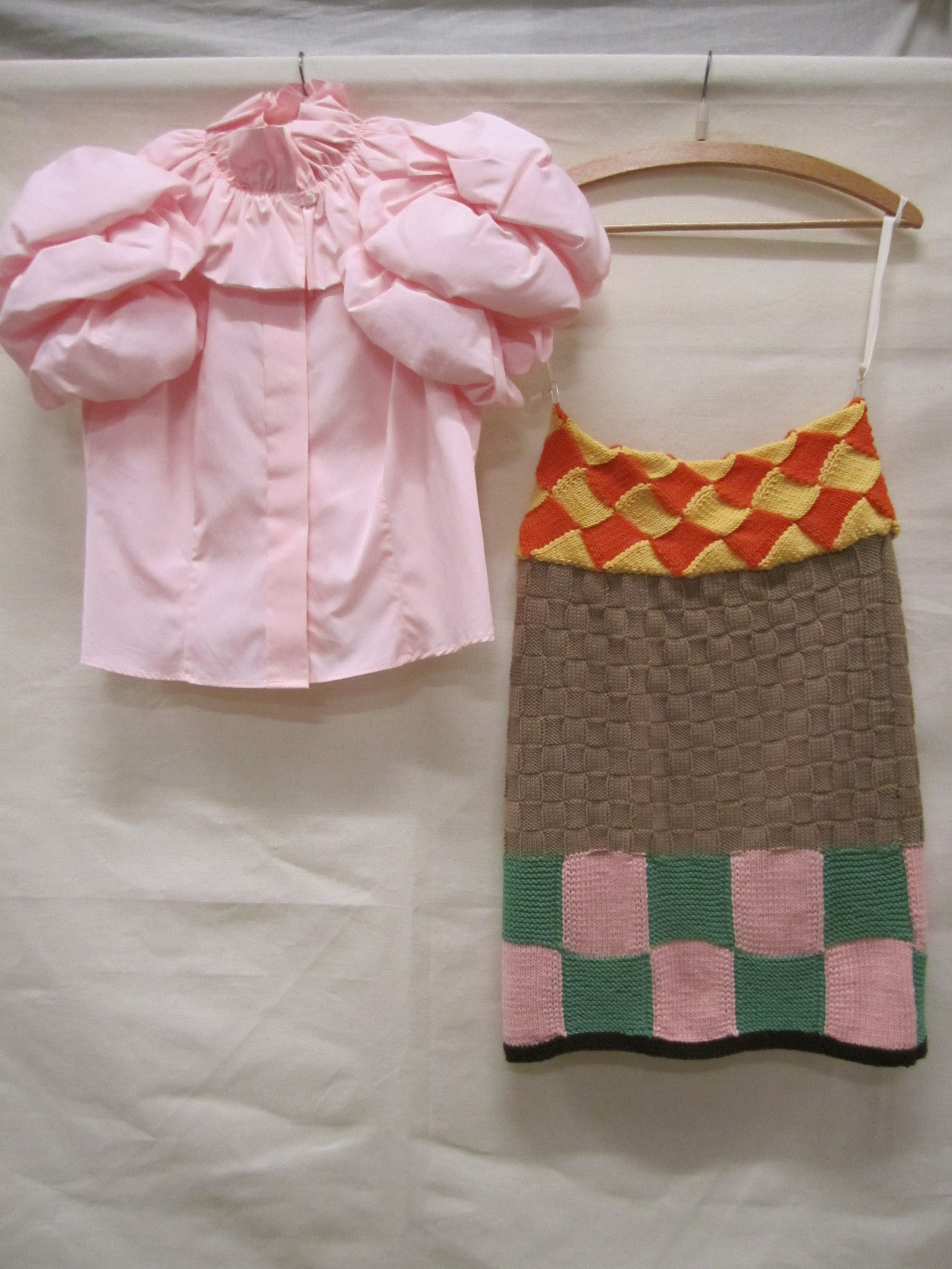 Ensemble bestaande uit een blouse van roze katoen, e...