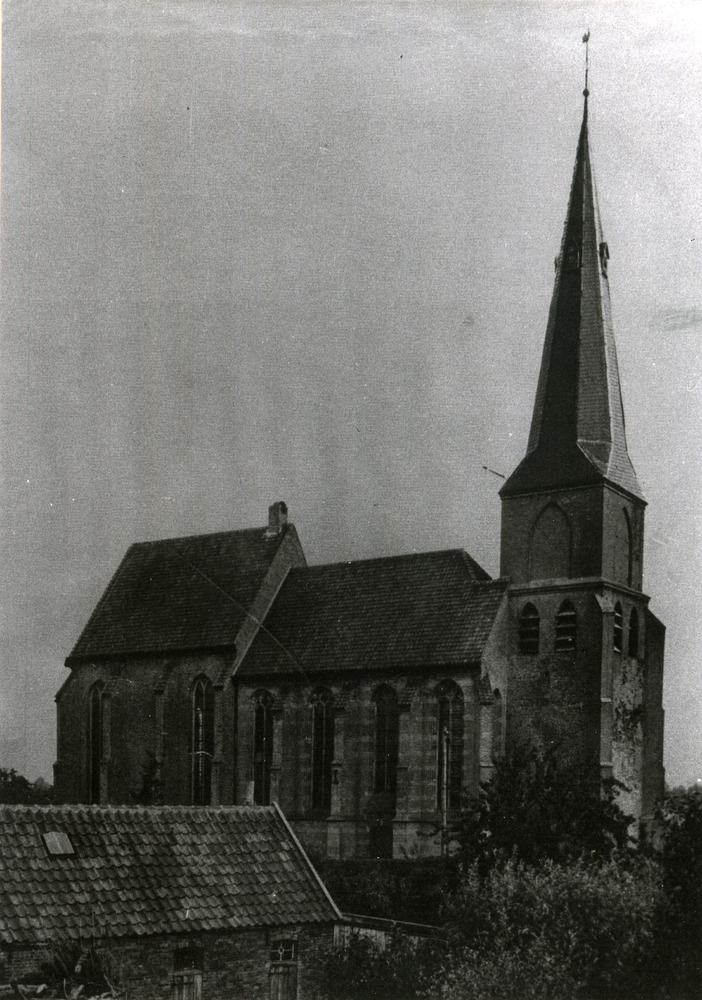 Zwart-wit foto van de kerk in Aerdt ca. 1950
