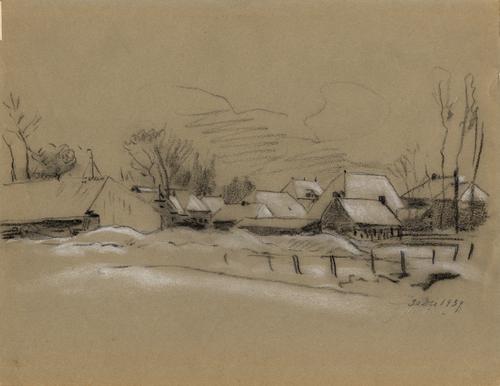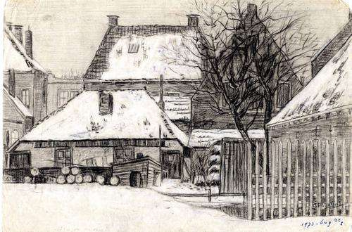 Tekening met gezicht op de molen "De Hoop" van dhr W...
