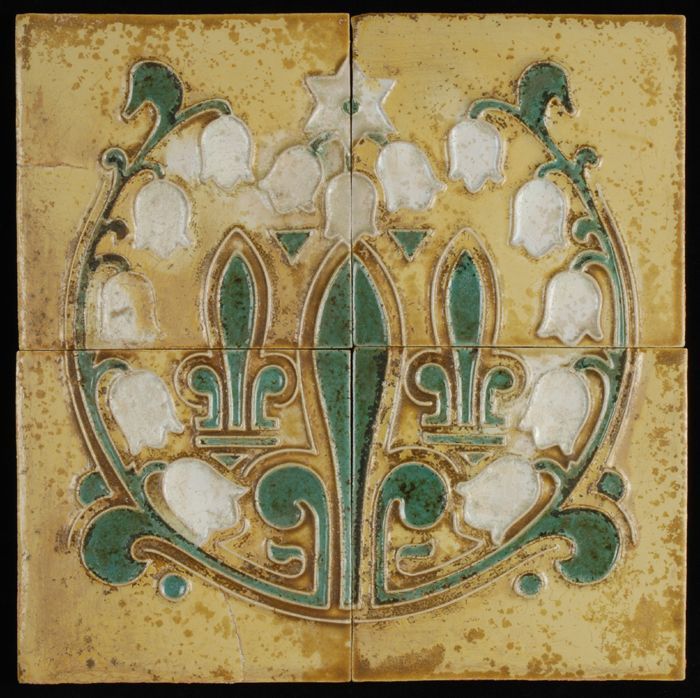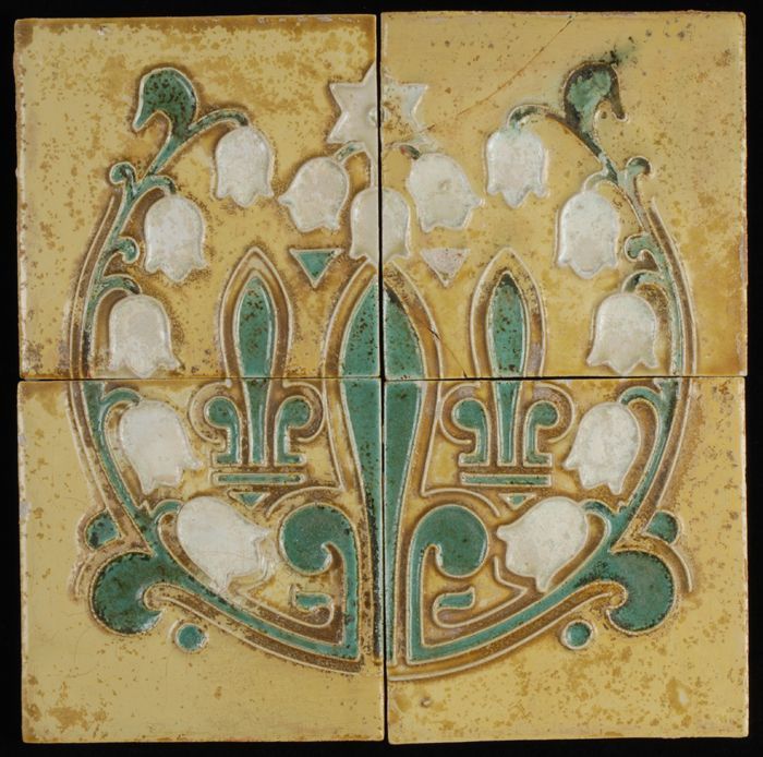 Tegeltableau van vier tegels met Lelietjes van Dalen...