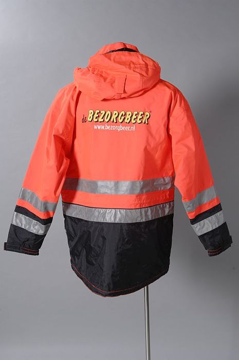 Gewatteerd fluor-oranje jack met afritsbare capuchon...
