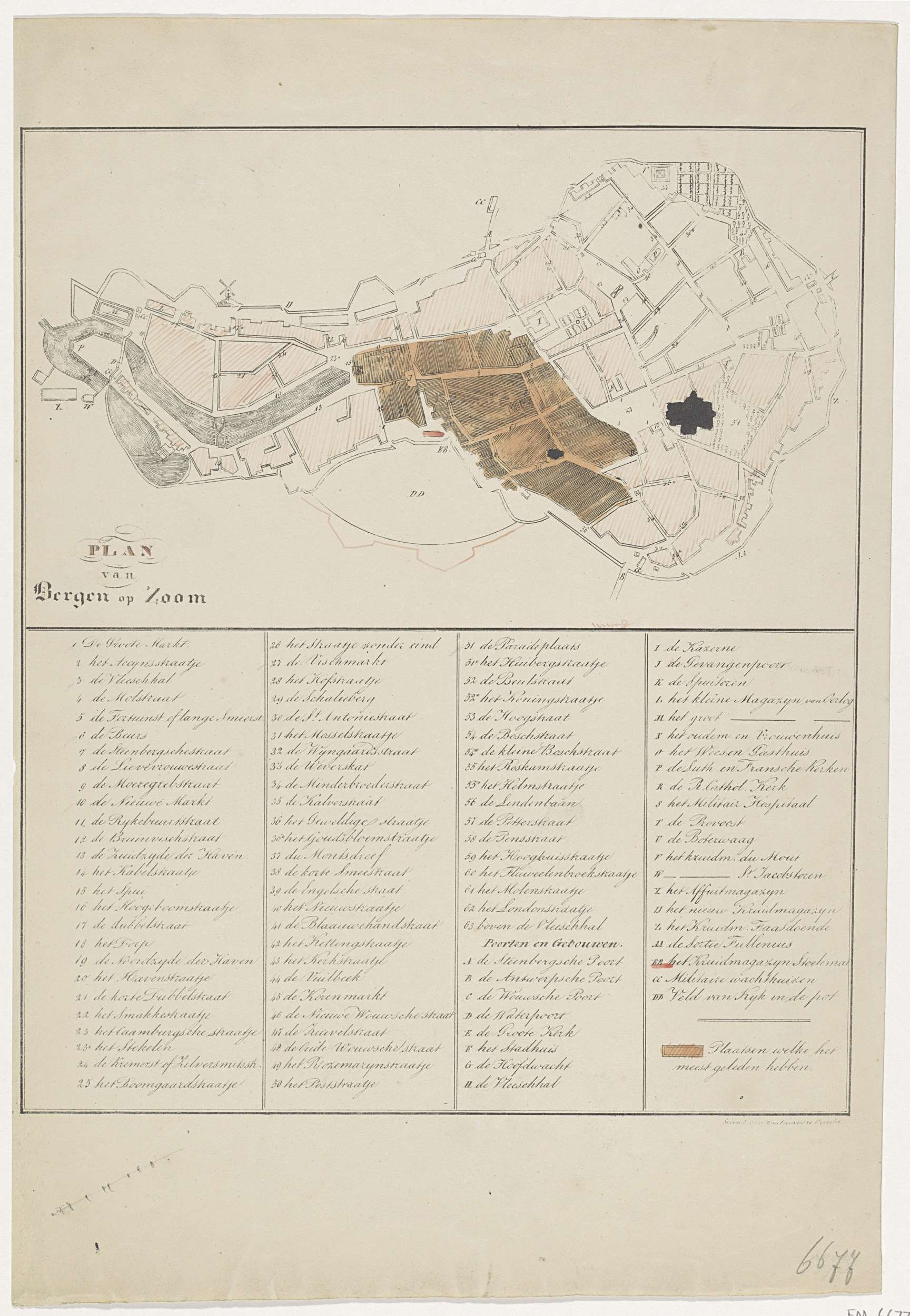 Plattegrond van Bergen op Zoom na de ontploffing van...