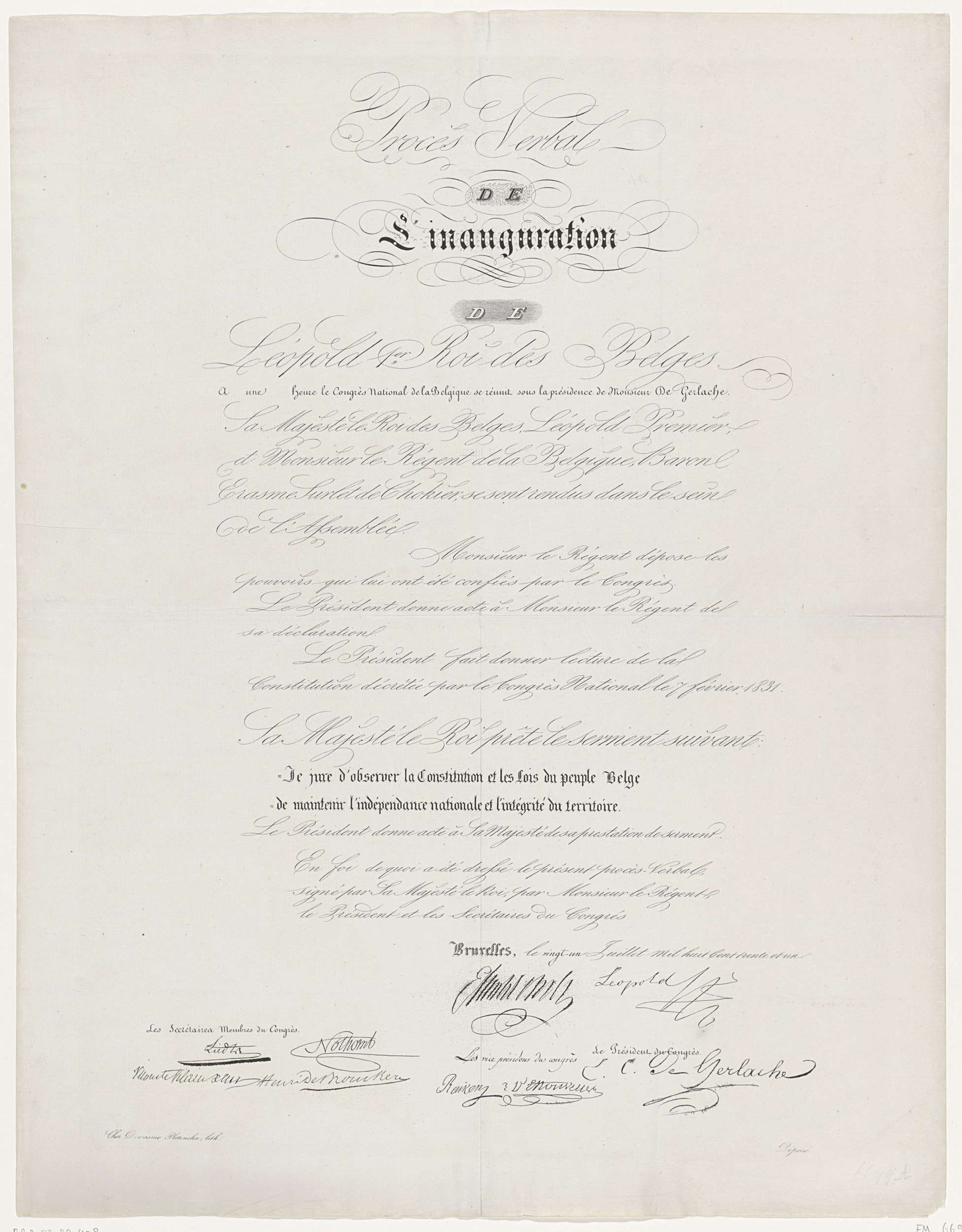 Proces-verbaal van de inhuldiging van koning Leopold...