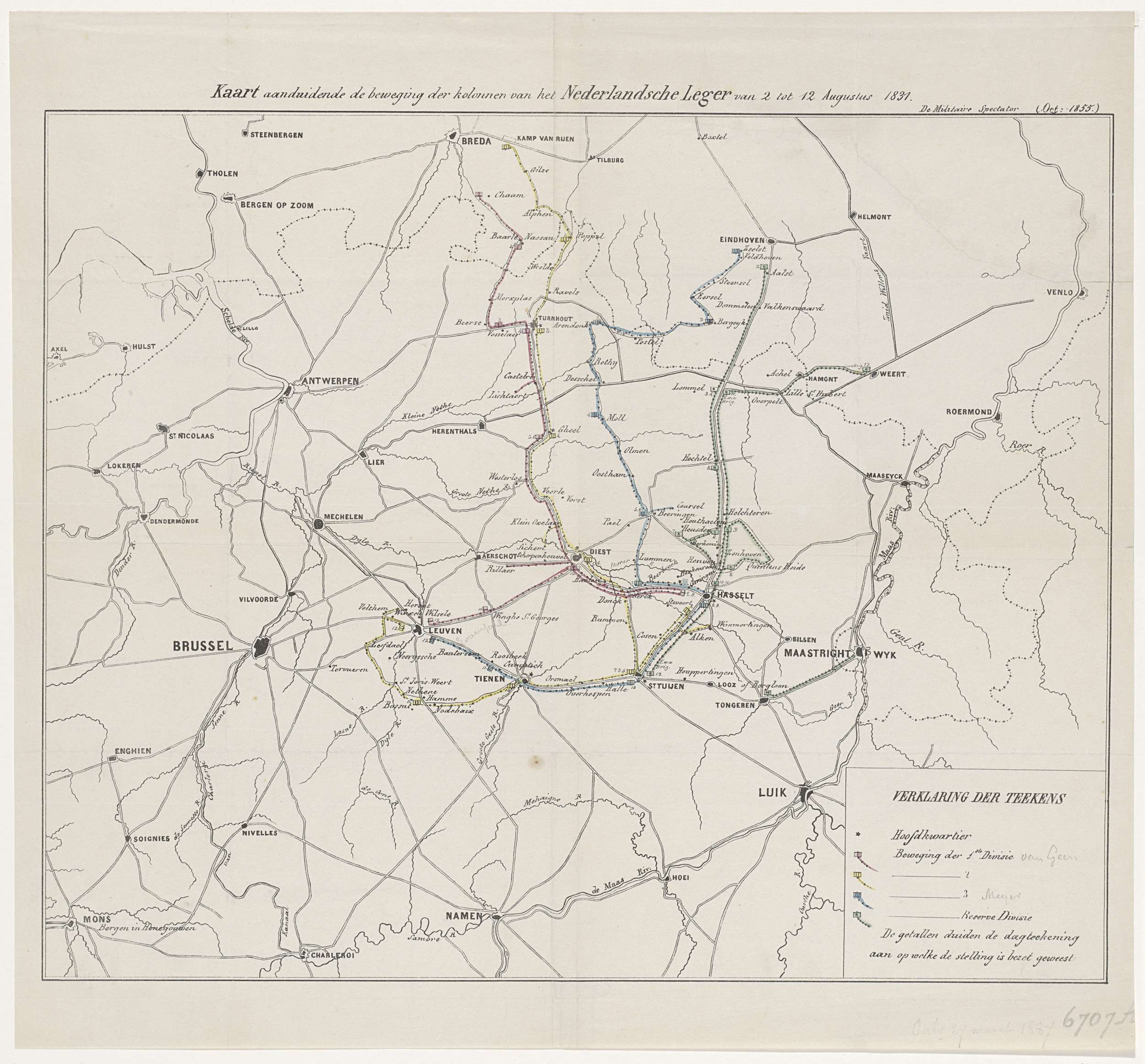 Kaart van Nederlandse troepenbewegingen tijdens de T...
