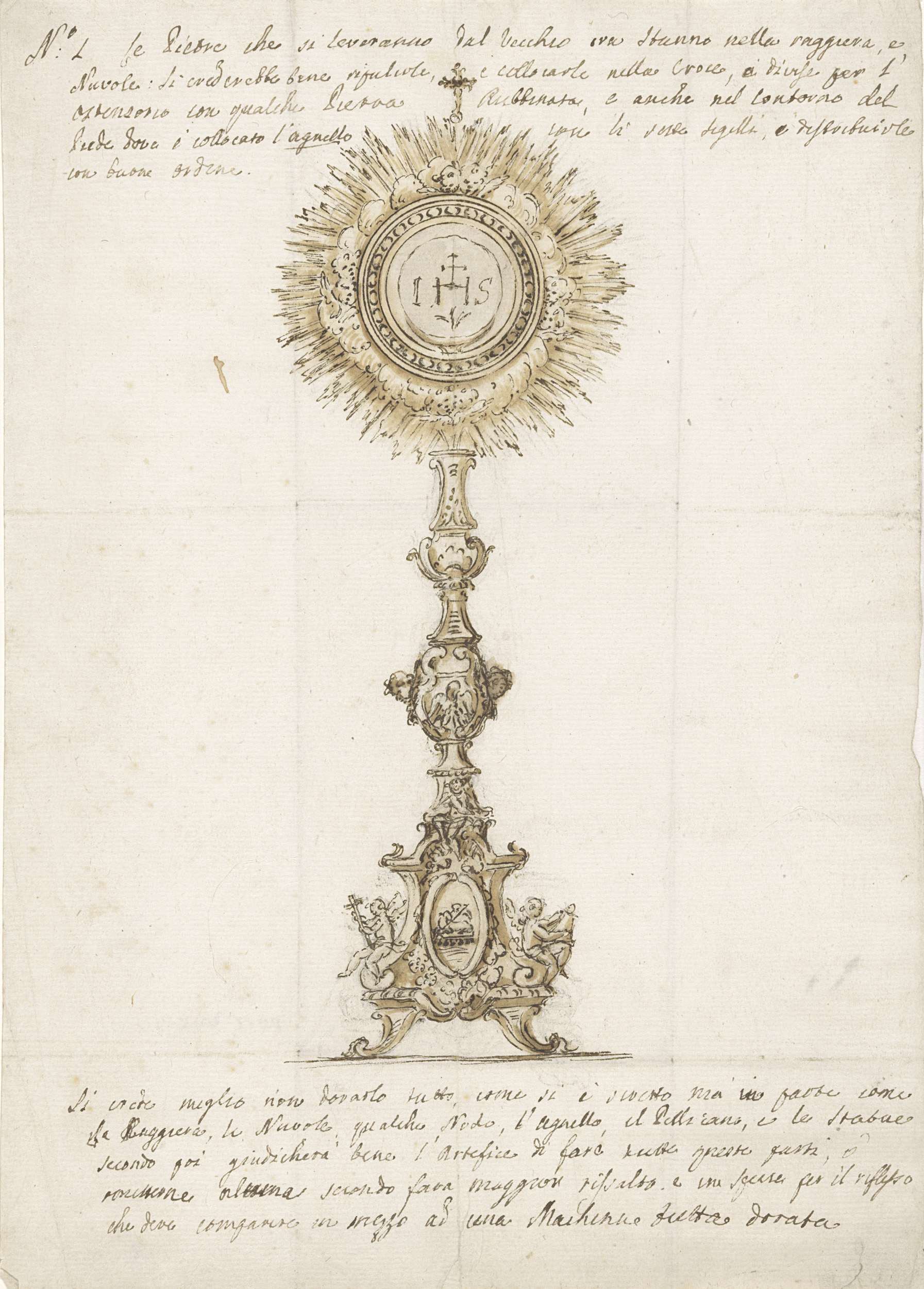 Ontwerp voor een stralenmonstrans met het monogram IHS