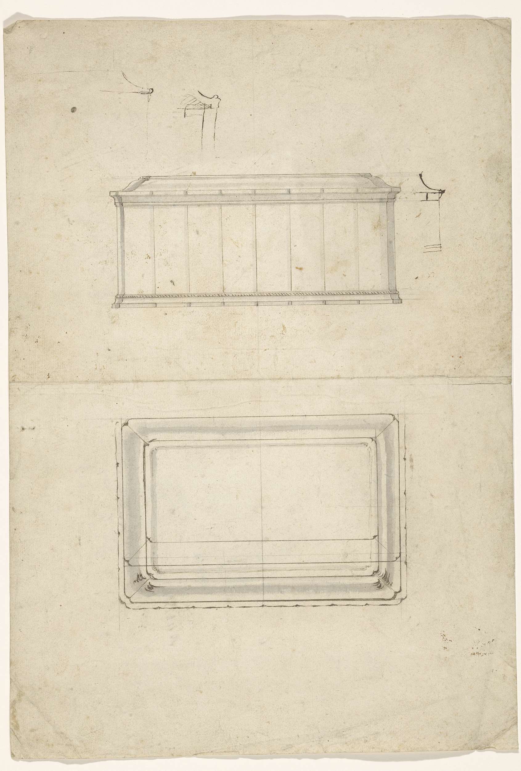 Ontwerp voor een kerklamp met rechtsboven een doorsn...