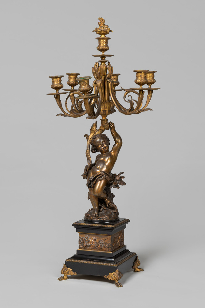 Kandelaber van zwart marmer en brons