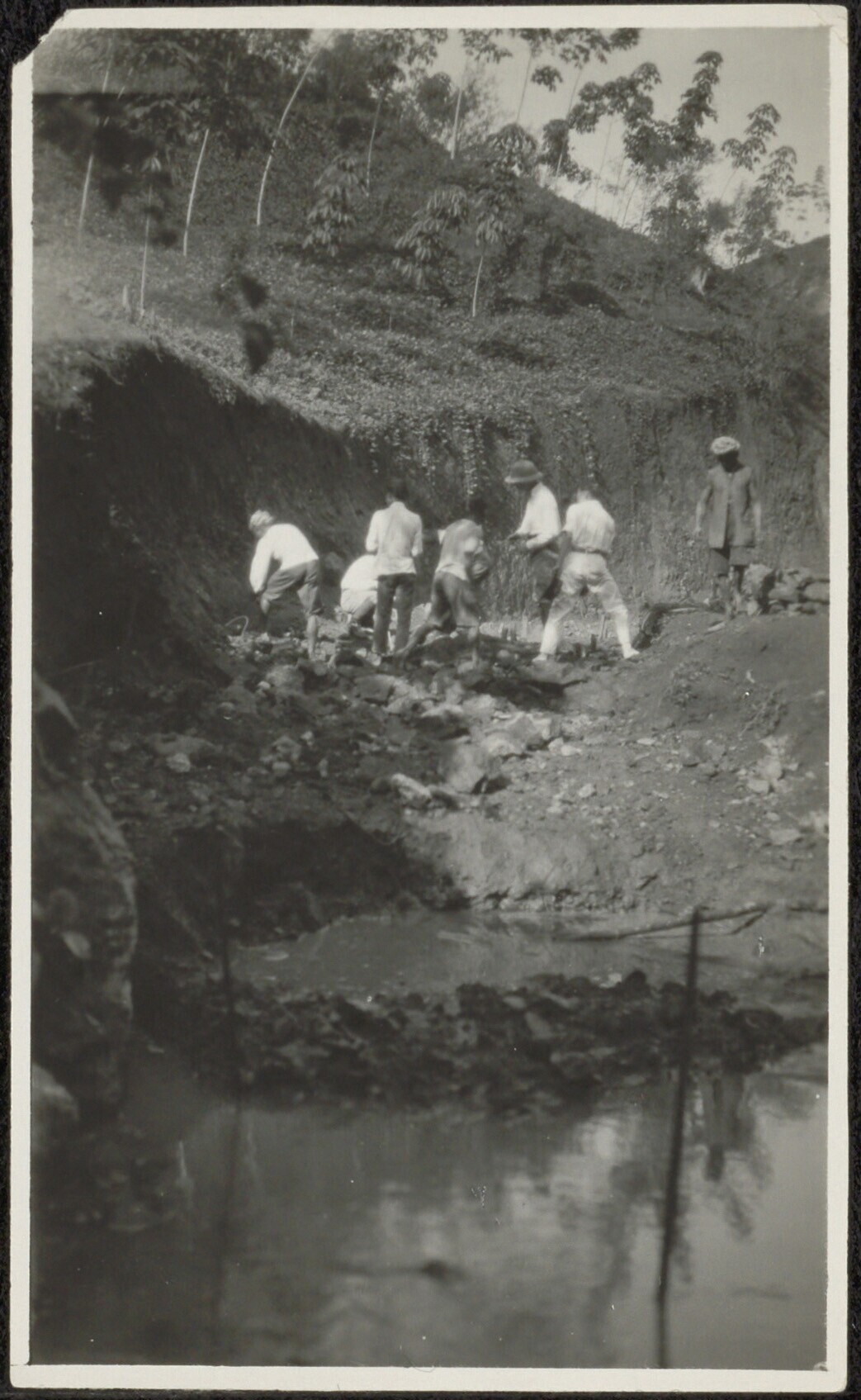 Groepsportret, genomen aan de oever van een rivier