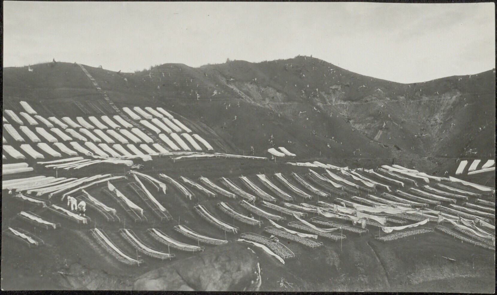 Plantage, vermoedelijk met jonge tabaksplanten in za...