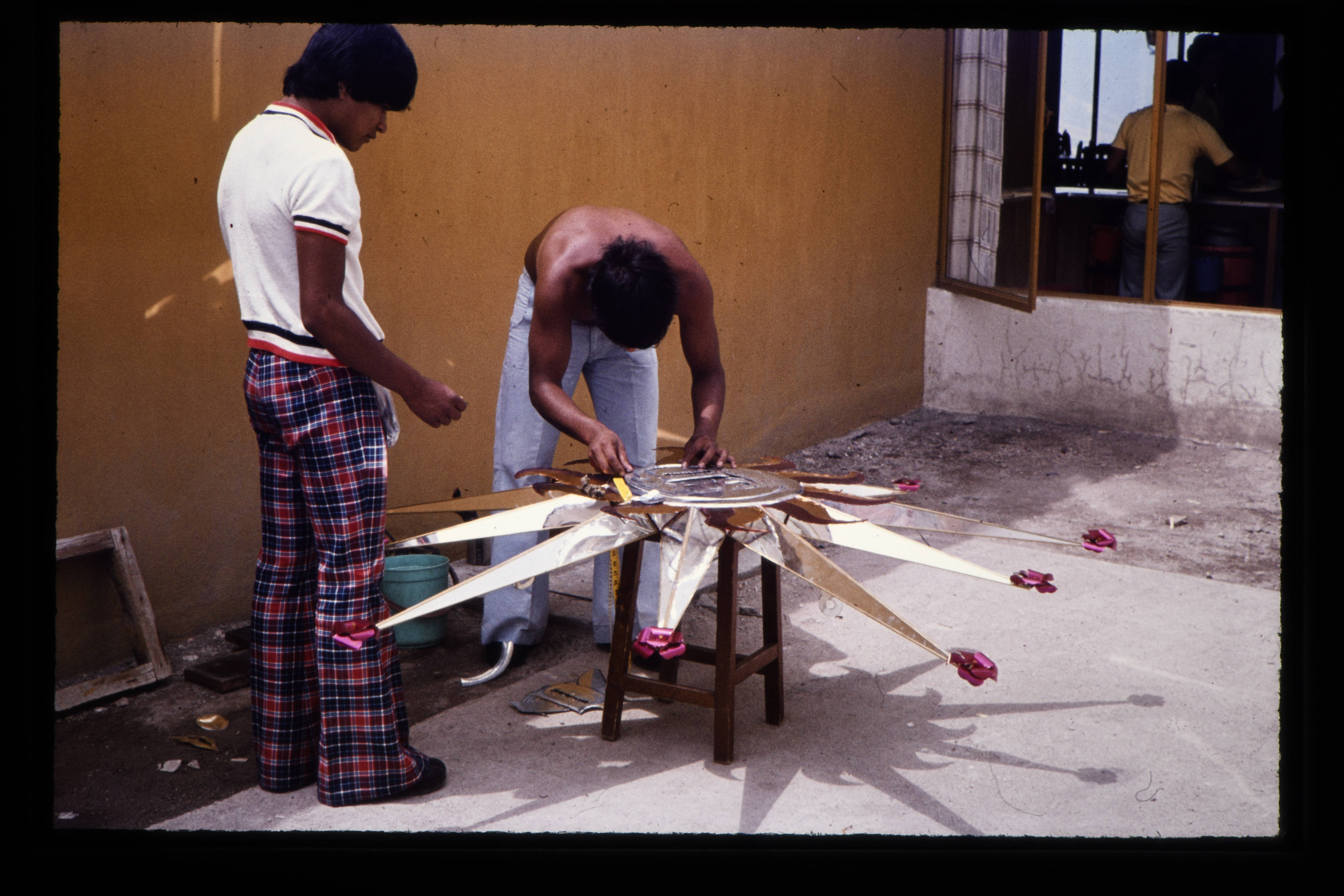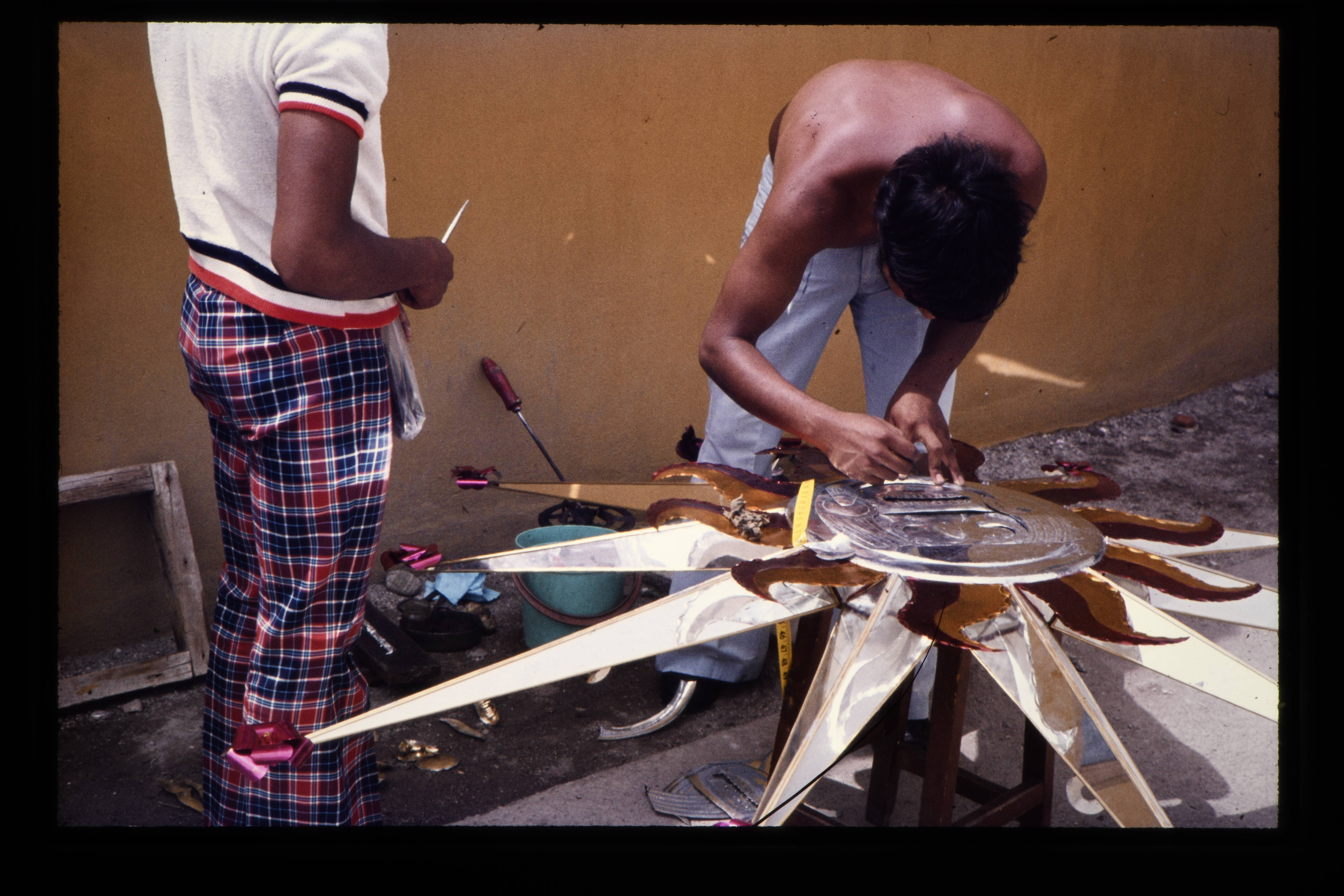 'Het vervaardigen van een blikken masker. Monte Albá...