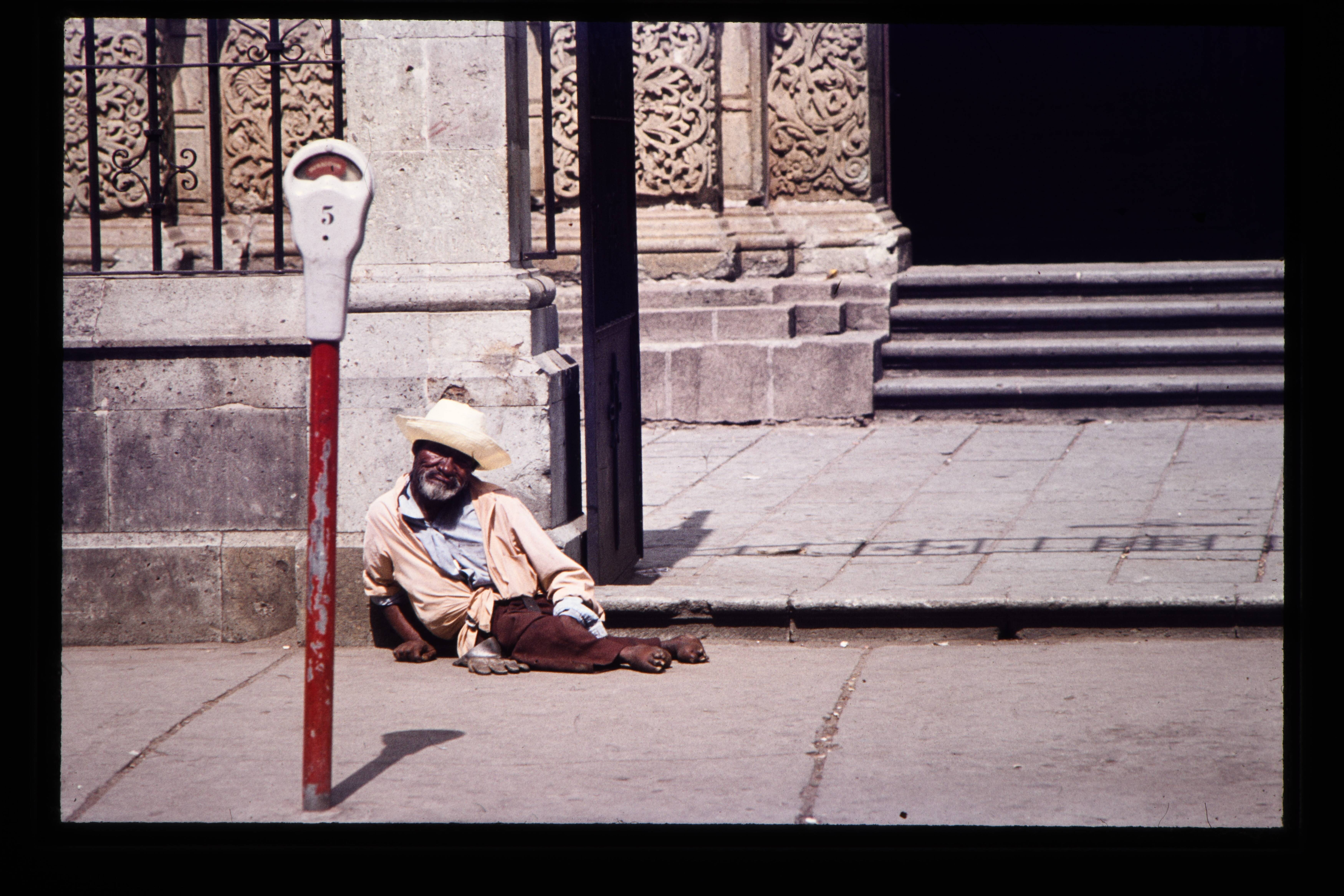 'Man voor de Kathedraal van Oaxaca. '