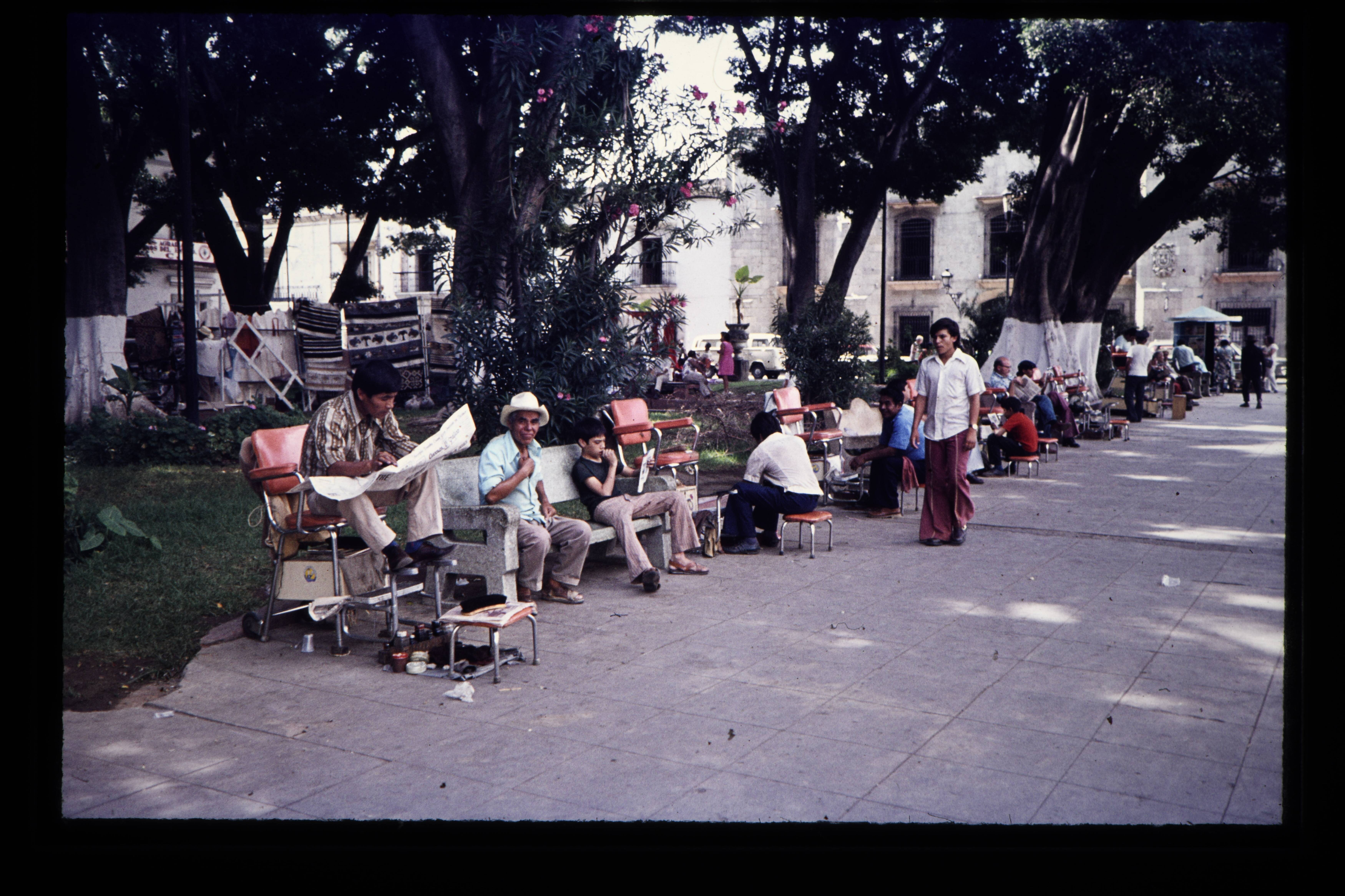 'Schoenpoetsers in de stad Oaxaca.'