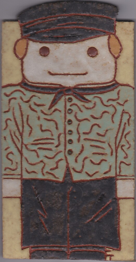 Tegel met ingekerfde lijnen, met voorstelling: stree...