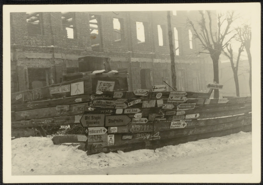 Richtingsborden op een kruising in Artemowsk (huidig...
