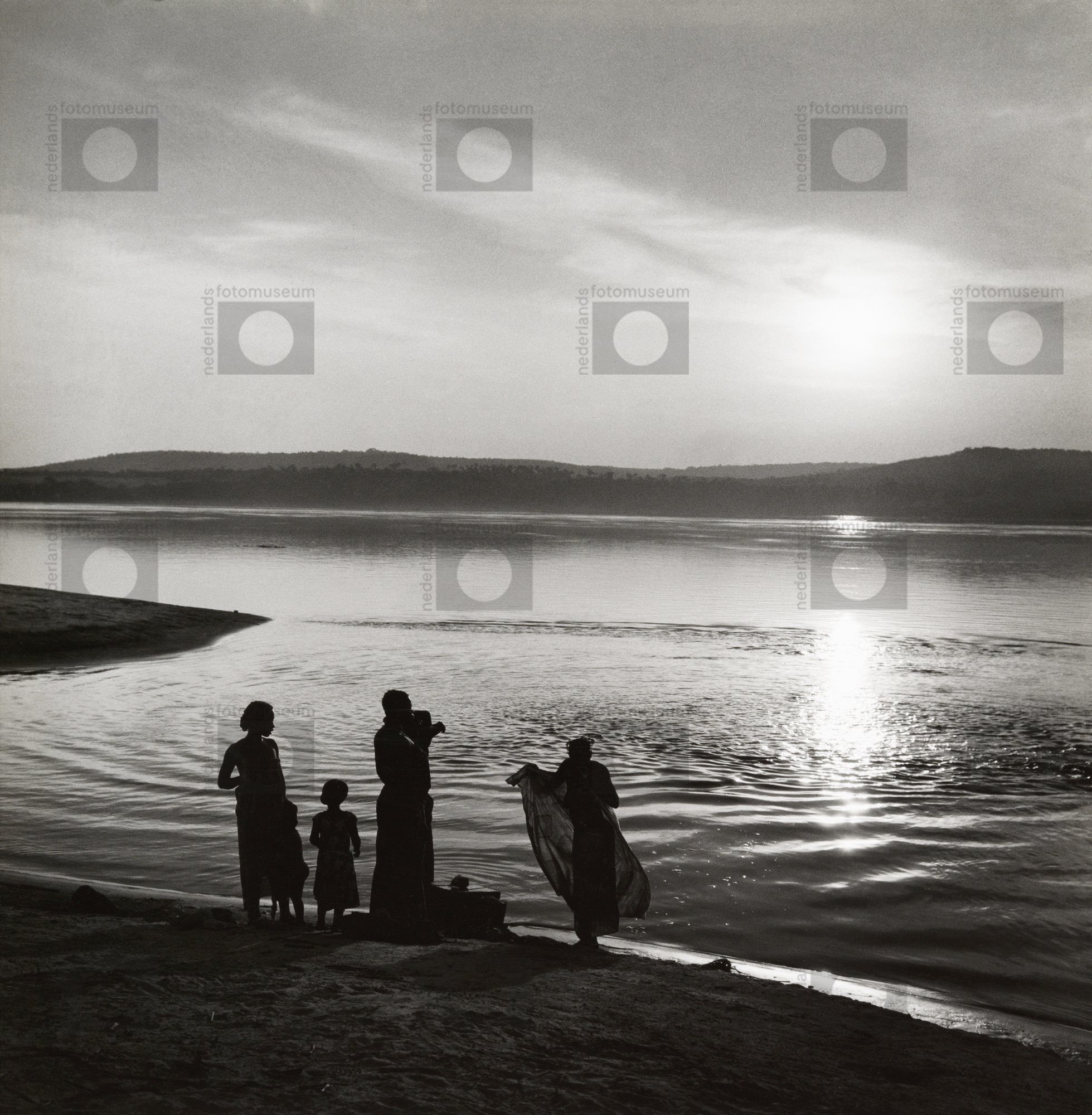 Aan de oevers van de rivier bij Kwamouth, Congo, 1958