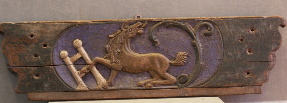 schamel van hout, met geneden voorstelling van paard...