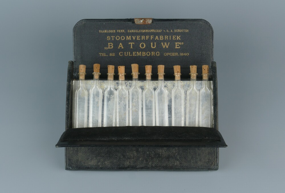 etui van leer met drukkersluiting, inhoudend 10 blan...