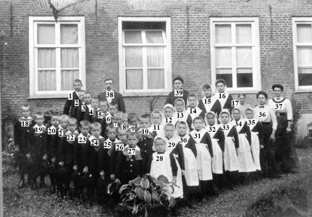 Foto, voorstellende kinderen voor het Elisabeth Wees...