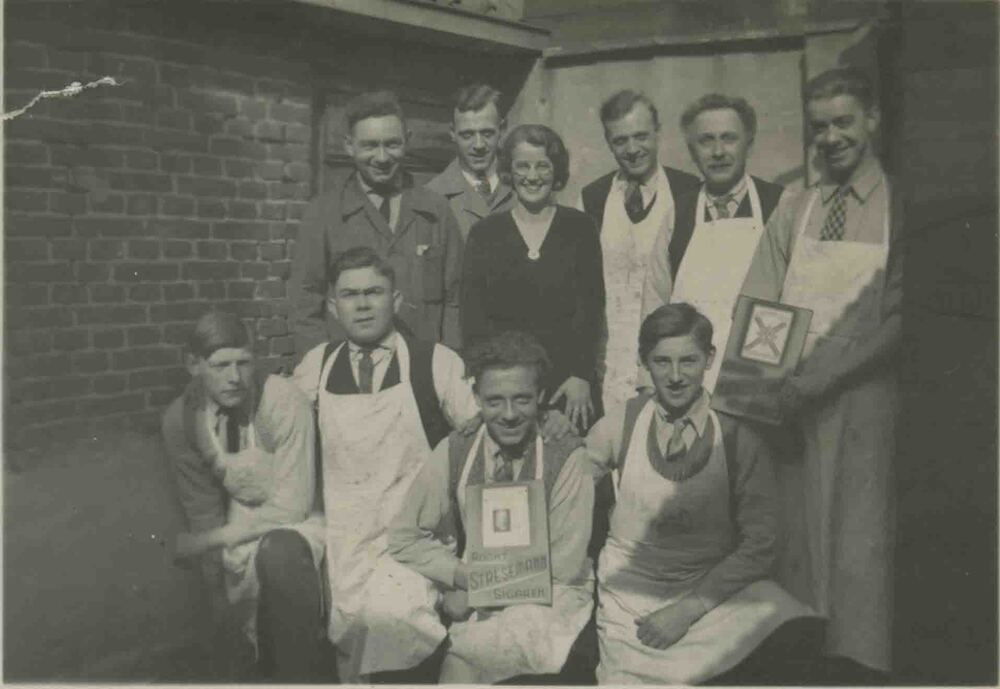 Foto, voorstellende medewerkers van de sigarenfabrie...