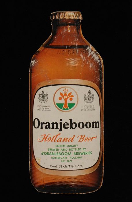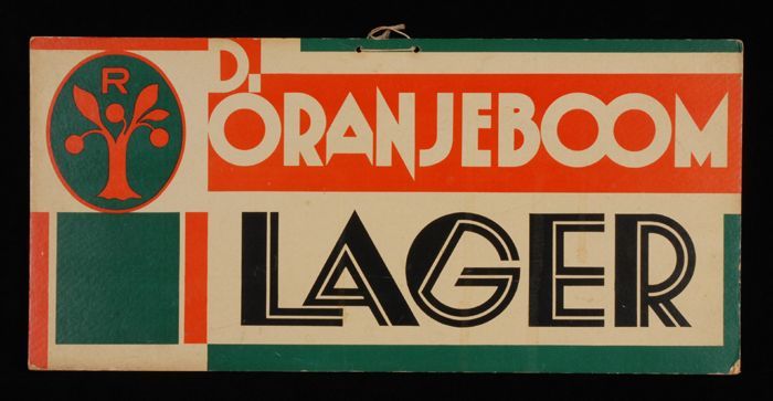 Reclamebord van Oranjeboom met in de vorm van een br...