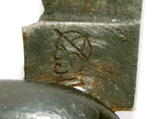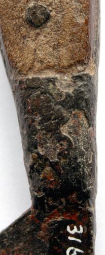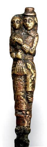Mes met bronzen heft, puntig ijzeren lemmet.