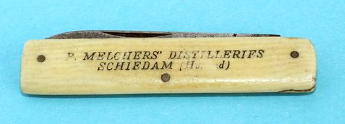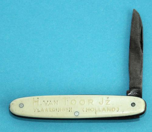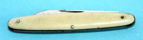 Mes. Metalen knipmes met witte ivoren bekleding. P. ...