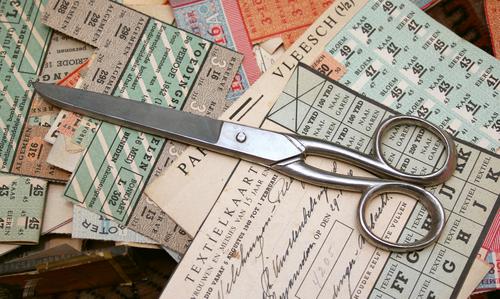 Huishoudschaar op 2e WO zegeltjes, bon kaarten.