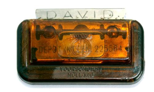 Mes. Metalen knipmes met witte celluloid bekleding S...