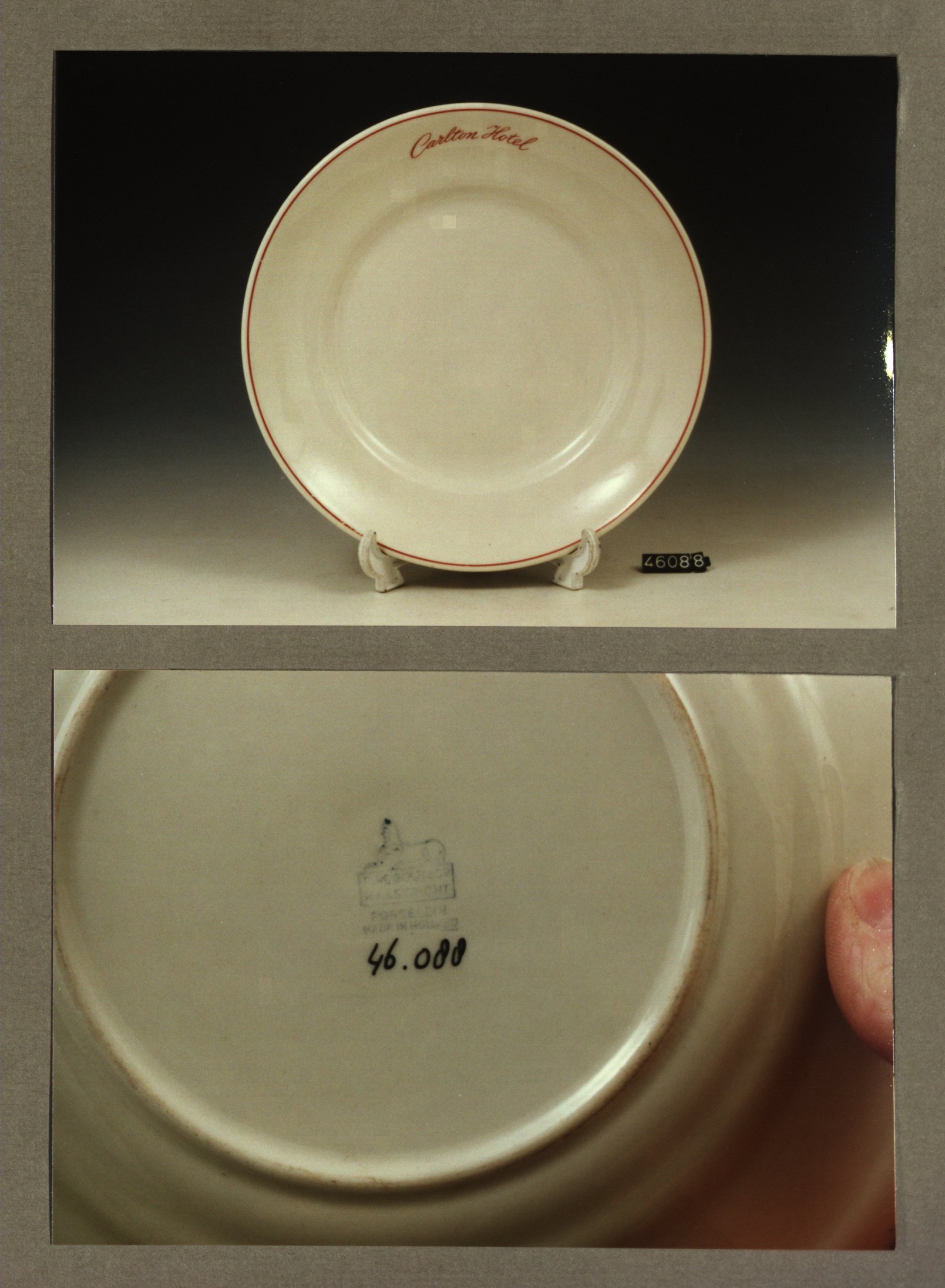 Plat bord, model P met decor Carlton hotel