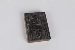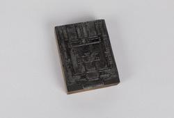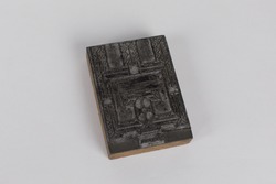 Houtsnedeblok met een geabstraheerde voorstelling va...