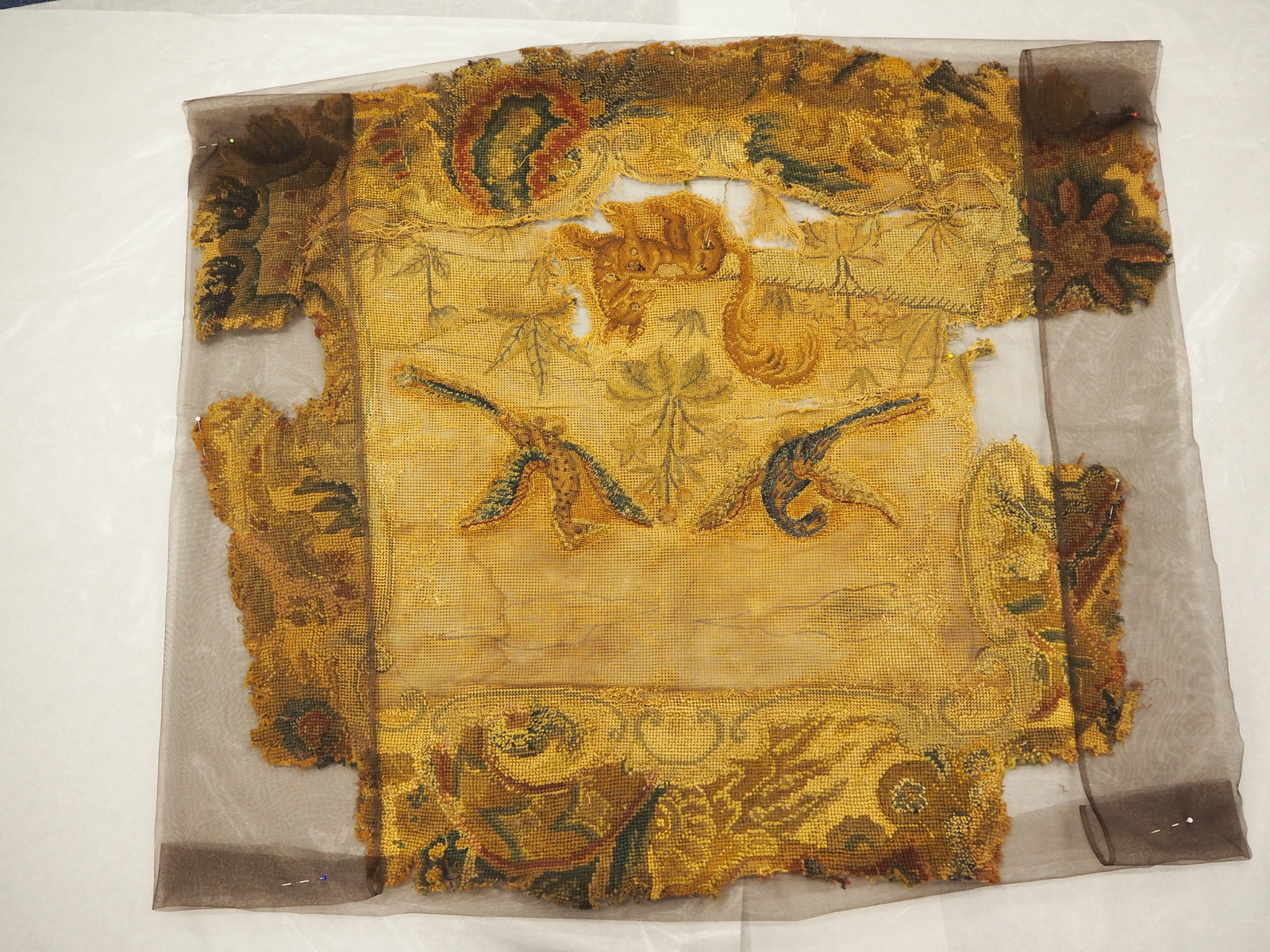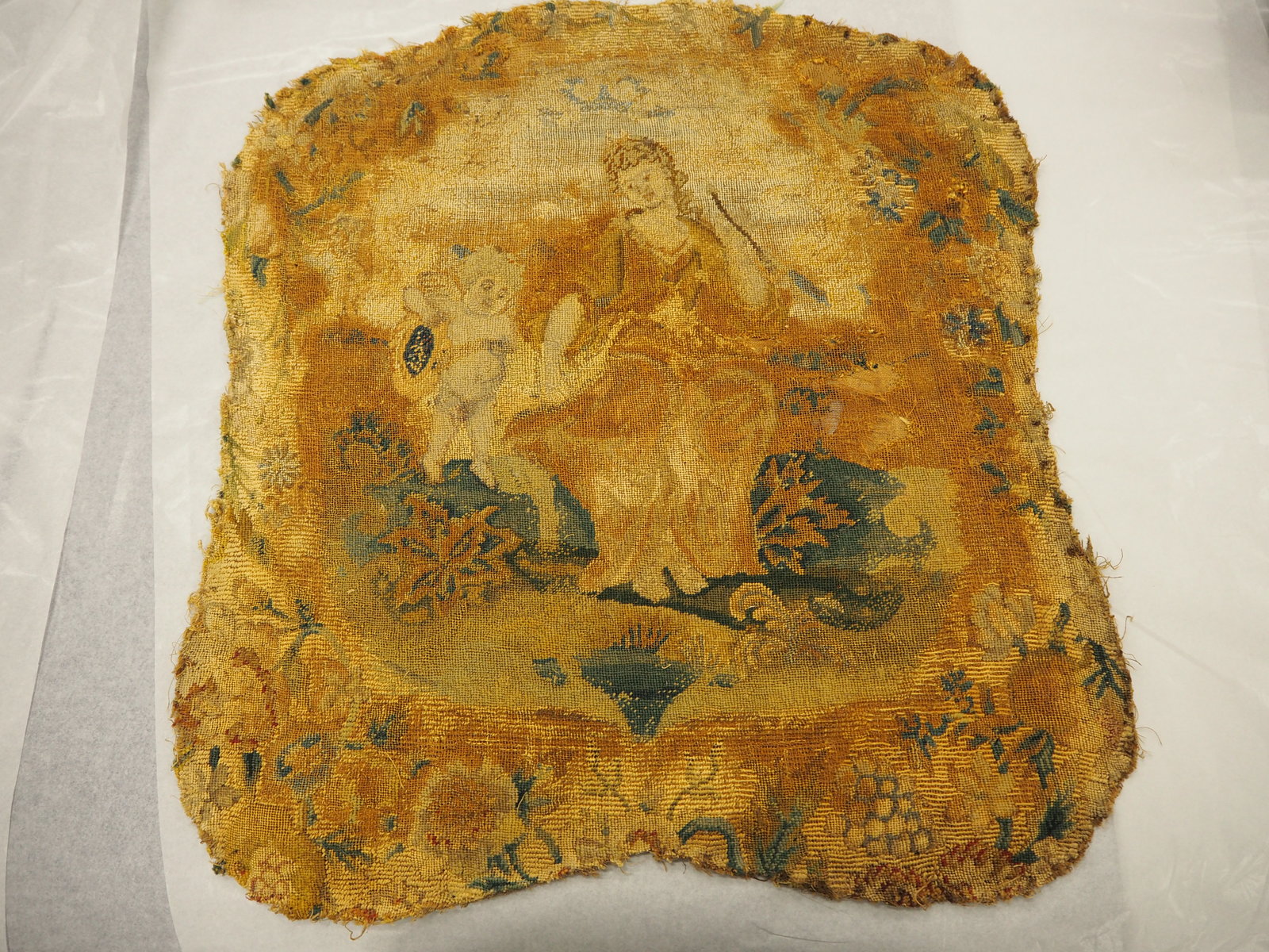 Kussen, bekleed met tapisserie, met het wapen van go...