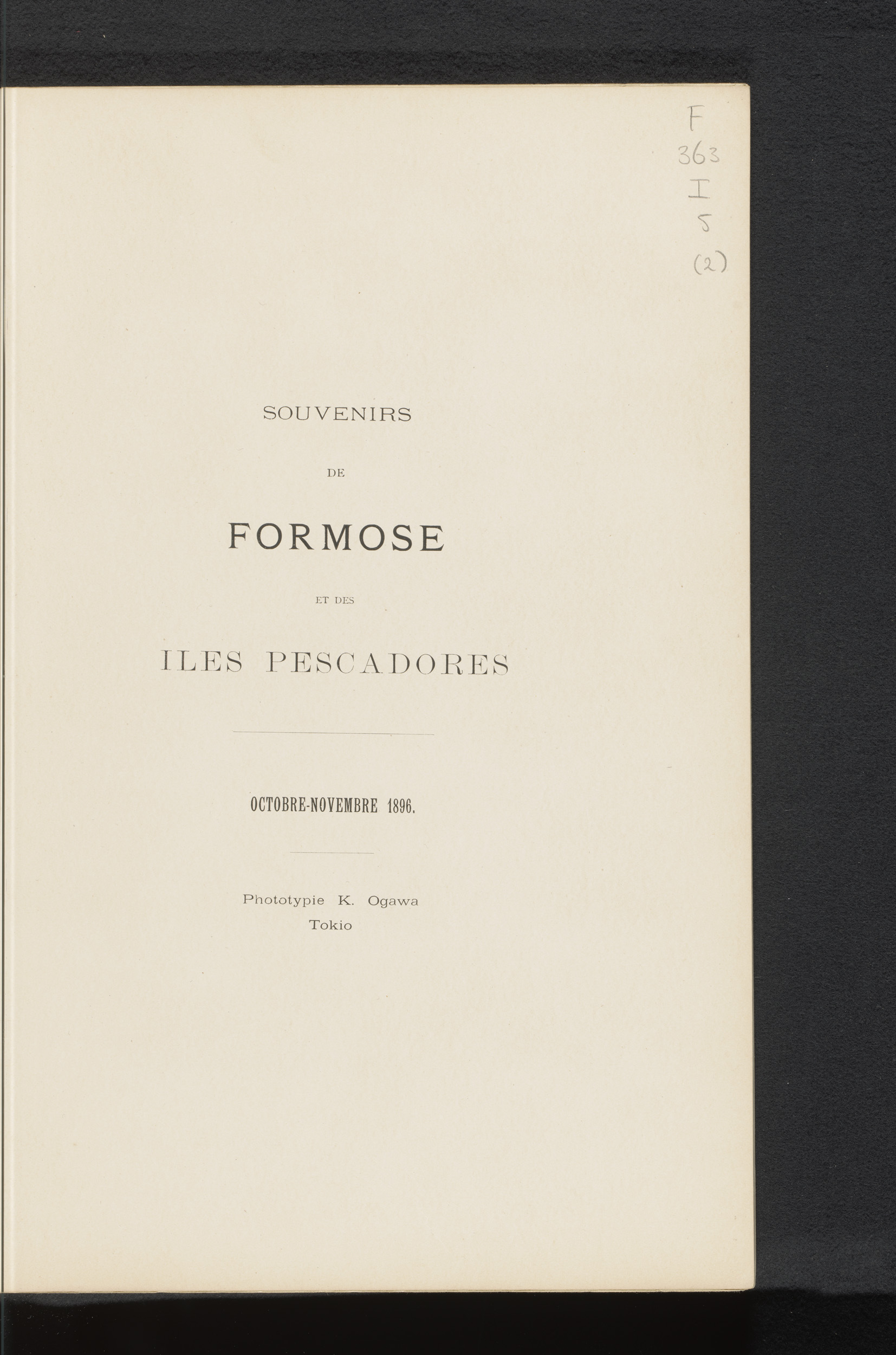 Souvenirs de Formose et des Iles Pescadores : octobr...