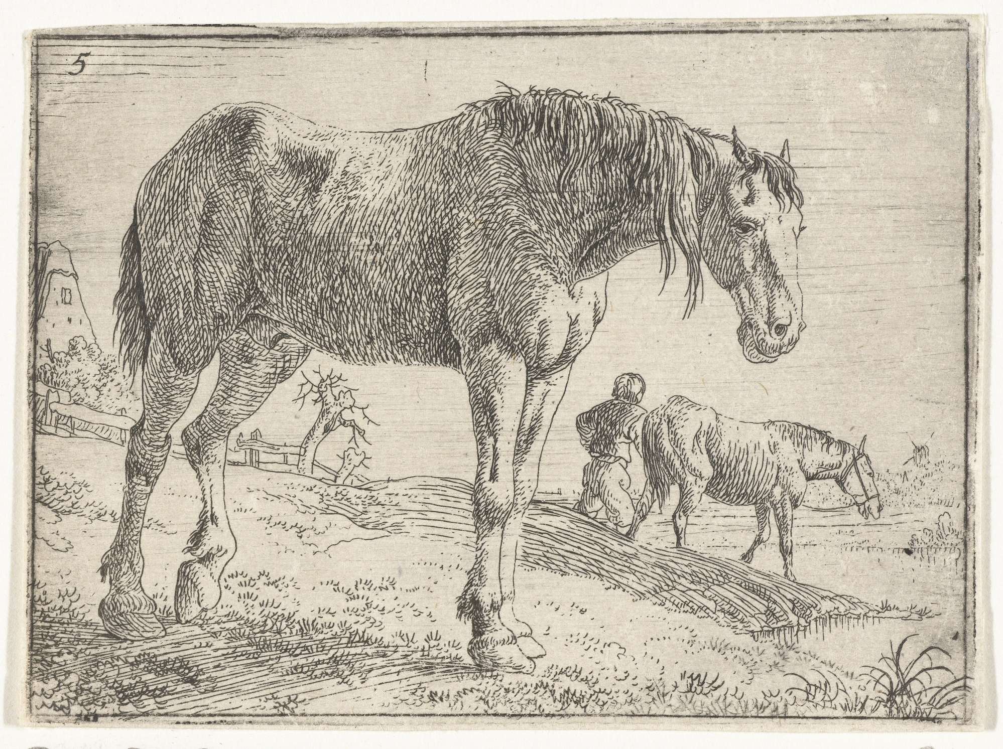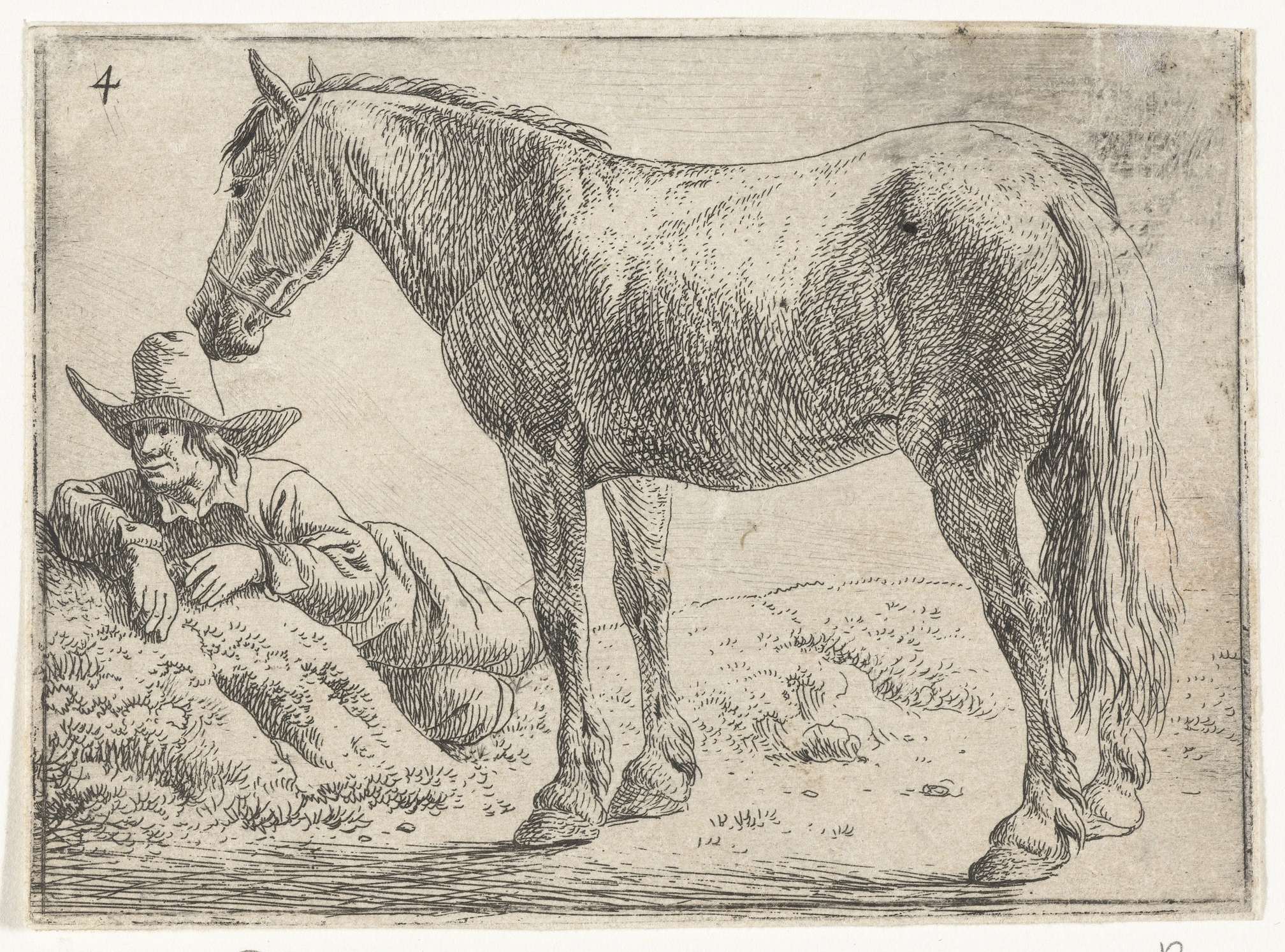 Staand paard met rustende ruiter